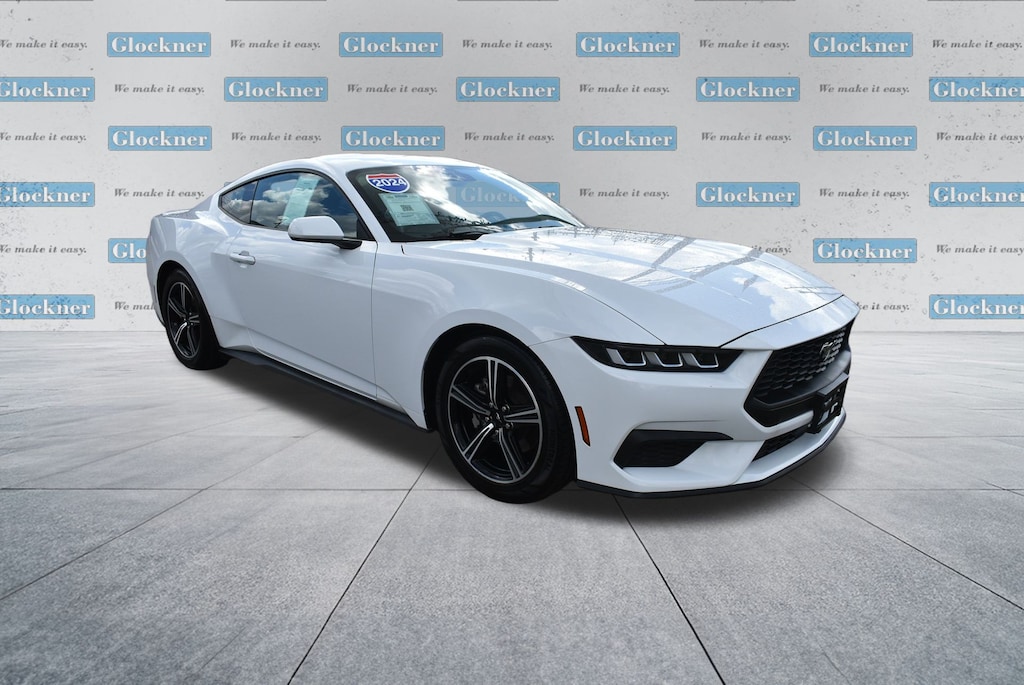 Glockner Chevrolet is proud to offer this stunning 2024 Ford Mustang in Oxford White. This 2024 Ford Mustang has passed our comprehensive inspection and comes with the following features; Equipment Group 200A Standard Package, Mustang EcoBoost Premium, Glockner Certified Certified, 2D Coupe, 4-Wheel Disc Brakes, 9 Speakers, ABS brakes, ActiveX Bucket Seats, Air Conditioning, Alloy wheels, AM/FM radio: SiriusXM with 360L, AM/FM Stereo, Auto High-beam Headlights, Auto-dimming Rear-View mirror, Automatic temperature control, Brake assist, Bumpers: body-color, Climate Controlled Heated/Cooled Front Seats, Compass, Delay-off headlights, Driver door bin, Driver vanity mirror, Dual front impact airbags, Dual front side impact airbags, Electronic Stability Control, Emergency communication system: 911 Assist, Exterior Parking Camera Rear, Four wheel independent suspension, Front anti-roll bar, Front Bucket Seats, Front Center Armrest, Front dual zone A/C, Front reading lights, Fully automatic headlights, HD Radio, Heated door mirrors, Heated front seats, Heated steering wheel, Illuminated entry, Knee airbag, Leather Shift Knob, Leather steering wheel, Occupant sensing airbag, Outside temperature display, Overhead airbag, Overhead console, Panic alarm, Passenger door bin, Passenger vanity mirror, Power door mirrors, Power driver seat, Power passenger seat, Power steering, Power windows, Radio data system, Rain sensing wipers, Rear anti-roll bar, Rear Parking Sensors, Rear window defroster, Remote keyless entry, SiriusXM w/360L, Speed control, Speed-sensing steering, Speed-Sensitive Wipers, Split folding rear seat, Spoiler, Sport steering wheel, Steering wheel mounted audio controls, SYNC 4.0 QNX, Tachometer, Telescoping steering wheel, Tilt steering wheel, Traction control, Trip computer, Turn signal indicator mirrors, Variably intermittent wipers, Ventilated front seats, Voltmeter, and Wheels: 18" x 8" Machined-Face Aluminum.