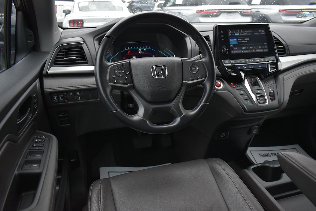 Glockner Ford Southpoint is proud to offer this attractive 2022 Honda Odyssey in . This 2022 Honda Odyssey has passed our comprehensive inspection and comes with the following features; 18" Machine-Finished Alloy Wheels, 3.61 Axle Ratio, 3rd row seats: split-bench, 4-Wheel Disc Brakes, 7 Speakers, A/V remote: CabinControl, ABS brakes, Adaptive Cruise Control: Adaptive Cruise Control (ACC) with Low-Speed Follow, Air Conditioning, Alloy wheels, AM/FM radio: SiriusXM, Anti-whiplash front head restraints, Apple CarPlay/Android Auto, Auto High-beam Headlights, Auto-dimming Rear-View mirror, Automatic temperature control, Blind Spot Information (BSI) System warning, Brake assist, Bumpers: body-color, Delay-off headlights, Driver door bin, Driver vanity mirror, Driver's Seat Mounted Armrest, Dual front impact airbags, Dual front side impact airbags, Electronic Stability Control, Exterior Parking Camera Rear, Forward collision: Collision Mitigation Braking System (CMBS) + FCW mitigation, Four wheel independent suspension, Front anti-roll bar, Front Bucket Seats, Front dual zone A/C, Front fog lights, Front reading lights, Fully automatic headlights, Garage door transmitter: HomeLink, Heated door mirrors, Heated Front Bucket Seats, Heated front seats, Illuminated entry, Knee airbag, Lane departure: Lane Keeping Assist System (LKAS) active, Leather Seat Trim, Leather steering wheel, Memory seat, Occupant sensing airbag, Outside temperature display, Overhead airbag, Overhead console, Panic alarm, Passenger door bin, Passenger seat mounted armrest, Passenger vanity mirror, Power door mirrors, Power driver seat, Power Liftgate, Power moonroof, Power passenger seat, Power steering, Power windows, Radio data system, Radio: 160-Watt AM/FM/HD/SiriusXM Audio System, Rear air conditioning, Rear anti-roll bar, Rear reading lights, Rear seat center armrest, Rear window defroster, Rear window wiper, Reclining 3rd row seat, Remote keyless entry, Security system, Speed control, Speed-sensing steering, Speed-Sensitive Wipers, Split folding rear seat, Spoiler, Steering wheel mounted audio controls, Tachometer, Telescoping steering wheel, Tilt steering wheel, Traction control, Trip computer, Turn signal indicator mirrors, and Variably intermittent wipers.