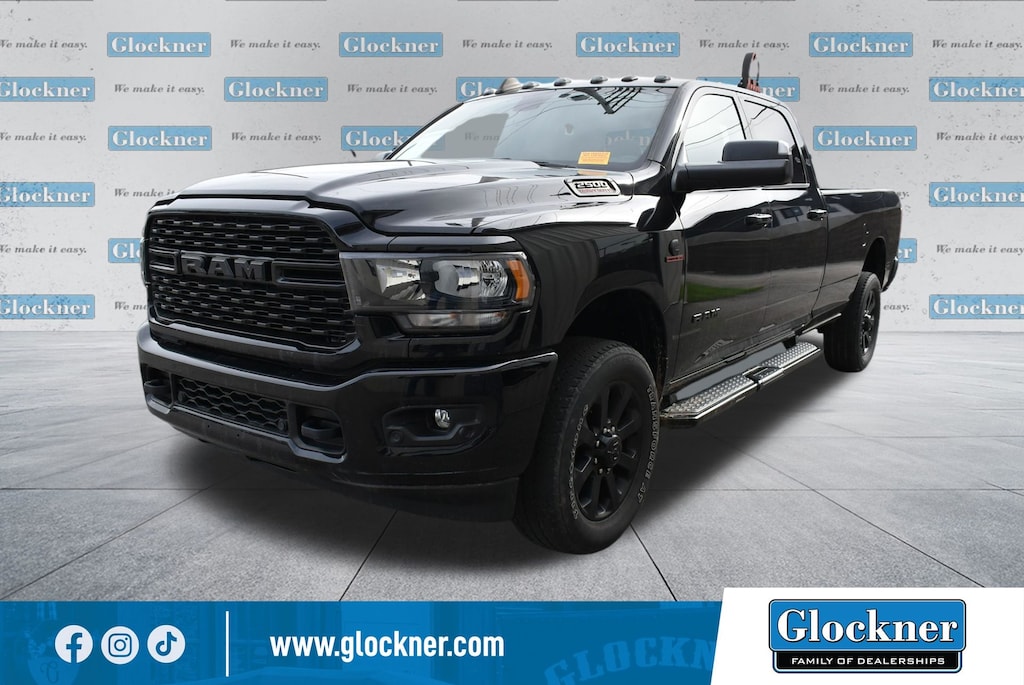 Glockner Chrysler Dodge Jeep Ram of Ashland is proud to offer this charming 2022 Ram 2500 in Diamond Black Crystal Pearlcoat. This 2022 Ram 2500 has passed our comprehensive inspection and comes with the following features; Heated Seats & Wheel Group (Heated Front Seats, Heated Steering Wheel, Leather Wrapped Steering Wheel, and Steering Wheel Mounted Audio Controls), Heavy Duty Snow Plow Prep Group (220 Amp Alternator), Level An Equipment Group (2 Way Rear Headrest Seat, 2nd Row In Floor Storage Bins, 4 Way Front Headrests, 40/20/40 Split Bench Seat, Auto-Dimming Rear-View Mirror, Center Hub, Center Stack Storage Drawer, Dual Glove Boxes, Foam Bottle Insert (Door Trim Panel), Folding Flat Load Floor Storage, Footwell Courtesy Lamp, Front Armrest w/Cupholders, Front Center Seat Cushion Storage, Front Fog Lamps, Front Seat Back Map Pockets, Glove Box Lamp, Locking Lower Glove Box, Manual Adjust 4-Way Front Passenger Seat, Power 2-Way Driver Lumbar Adjust, Power Adjust 8-Way Driver Seat, Power Adjustable Pedals, Premium Cloth 40/20/40 Bench Seat, Rear 60/40 Folding Seat, Rear Dome w/On/Off Switch Lamp, Storage Tray, Sun Visors w/Illuminated Vanity Mirrors, Universal Garage Door Opener, and Wheels: 18" x 8.0" Polished Aluminum), Night Edition (Black Exterior Truck Badging, Black Headlamp Bezels, Black Interior Accents, Black Ram Head Tailgate Badge, Black Tail Lamp Bezels, Black Wheel Center Hub, Body Color Door Handles, Body Color Grille Surround, Gloss Black Grille Nostrils/Mic, Painted Front Bumper, Painted Rear Bumper, ParkSense Front/Rear Park Assist System, and Wheels: 20" x 8.0" Black Painted Aluminum), Quick Order Package 2HZ Big Horn, FCA US LLC Certified Pre-Owned Certified, 3.73 Axle Ratio, 4-Wheel Disc Brakes, 4G LTE Wi-Fi Hot Spot, 5th Wheel/Gooseneck Towing Prep Group, 6 Speakers, 8.4" Touchscreen Display, ABS brakes, Active Noise Control System, Air Conditioning, AM/FM radio: SiriusXM, Apple CarPlay, Apple CarPlay/Android Auto, Bluetooth Handsfree Phone & Audio, Brake assist, Bumpers: chrome, Clearance Lamps, Cloth 40/20/40 Bench Seat, Cluster 7.0" TFT Color Display, Compass, Connectivity - US/Canada, Dash Pass Thru Wire Circuits, Delay-off headlights, Driver door bin, Dual front impact airbags, Dual front side impact airbags, Electronic Stability Control, Electronically Controlled Throttle, Front anti-roll bar, Front Center Armrest w/Storage, Front License Plate Bracket, Front reading lights, Fully automatic headlights, Global Telematics Box Module (TBM), Google Android Auto, GPS Antenna Input, Heated door mirrors, I/P Mounted Auxiliary Switches, Illuminated entry, Integrated Center Stack Radio, Integrated Voice Command w/Bluetooth, LED Bed Lighting, Low tire pressure warning, Manual Adjust 4-Way Driver Seat, MOPAR Spray In Bedliner, Occupant sensing airbag, Outside temperature display, Overhead airbag, Overhead console, Painted Flat Cab-Length Side Steps, Panic alarm, ParkView Rear Back-Up Camera, Passenger door bin, Passenger vanity mirror, Power door mirrors, Power steering, Power windows, Radio data system, Radio: Uconnect 5 W w/8.4" Display, Rear anti-roll bar, Rear Folding Seat, Rear seat center armrest, Rear step bumper, Rear Window Defroster, Remote keyless entry, Remote Start System, Selectable Tire Fill Alert, SiriusXM Radio Service, SiriusXM Satellite Radio, Speed control, Tachometer, Tilt steering wheel, Tip Start, Tow Hooks, Traction control, Trip computer, Turn signal indicator mirrors, Variably intermittent wipers, Voltmeter, and Wheels: 18" x 8.0" Steel Chrome Clad.