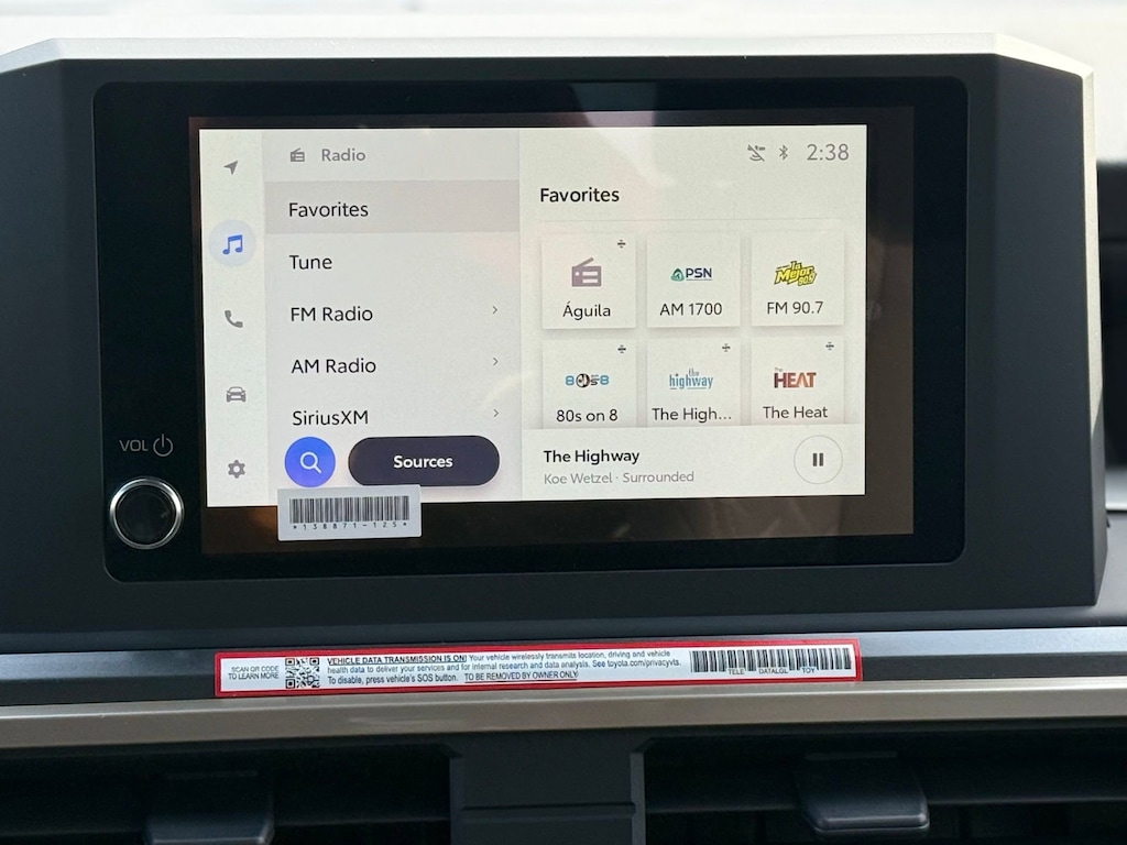 - 8-in. Toyota Audio Multimedia display with 6-speaker audio system, wireless Apple CarPlay(R) Android Auto compatibility, SiriusXM(R) 3-month trial subscription. See toyota.com/connected-services for details.