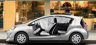 - Nine airbags surround passengers in the new Prius C model.Ā
