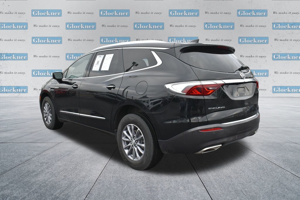 Glockner of Ironton is proud to offer this fantastic-looking 2023 Buick Enclave in Ebony Twilight Metallic. This 2023 Buick Enclave has passed our comprehensive inspection and comes with the following features; 5000lbs Trailering Package (Heavy-Duty Cooling System, Hitch Guidance, and Hitch Guidance w/Hitch View), Preferred Equipment Group 1SL (Front & Rear Park Assist and Heated Steering Wheel), Glockner Certified Certified, FWD, 18 Aluminum Wheels, 3 Years of OnStar & Connected Services Plan (DISC), 3.49 Axle Ratio, 3rd row seats: split-bench, 4-Wheel Disc Brakes, 6 Speakers, 6-Speaker Audio System Feature, 6-Way Power Front Passenger Seat Adjuster, 7-Passenger Seating, 8-Way Power Driver Seat Adjuster, ABS brakes, Air Conditioning, Alloy wheels, AM/FM radio: SiriusXM with 360L, Auto High-beam Headlights, Auto-dimming door mirrors, Auto-dimming Rear-View mirror, Automatic temperature control, Brake assist, Bumpers: body-color, Compass, Delay-off headlights, Driver door bin, Driver vanity mirror, Dual front impact airbags, Dual front side impact airbags, Electronic Stability Control, Emergency communication system: OnStar and Buick connected services capable, Four wheel independent suspension, Front anti-roll bar, Front Bucket Seats, Front Center Armrest, Front dual zone A/C, Front reading lights, Fully automatic headlights, Garage door transmitter, Heated door mirrors, Heated Driver & Front Passenger Seats, Heated front seats, Heated steering wheel, Illuminated entry, Leather steering wheel, Low tire pressure warning, Occupant sensing airbag, Outside temperature display, Overhead airbag, Overhead console, Panic alarm, Passenger door bin, Passenger vanity mirror, Perforated Leather-Appointed Seat Trim, Power door mirrors, Power Driver Lumbar Control Seat Adjuster, Power driver seat, Power Liftgate, Power Passenger Lumbar Control Seat Adjuster, Power passenger seat, Power steering, Power windows, Premium audio system: Buick Infotainment System, Radio data system, Radio: Buick Infotainment System AM/FM Stereo, Rear air conditioning, Rear anti-roll bar, Rear reading lights, Rear window defroster, Rear window wiper, Remote keyless entry, Roof rack: rails only, Security system, SiriusXM w/360L, Speed control, Speed-sensing steering, Spoiler, Steering wheel mounted audio controls, Tachometer, Telescoping steering wheel, Tilt steering wheel, Traction control, Trip computer, Turn signal indicator mirrors, Variably intermittent wipers, Voltmeter, and Wireless Apple CarPlay/Wireless Android Auto.