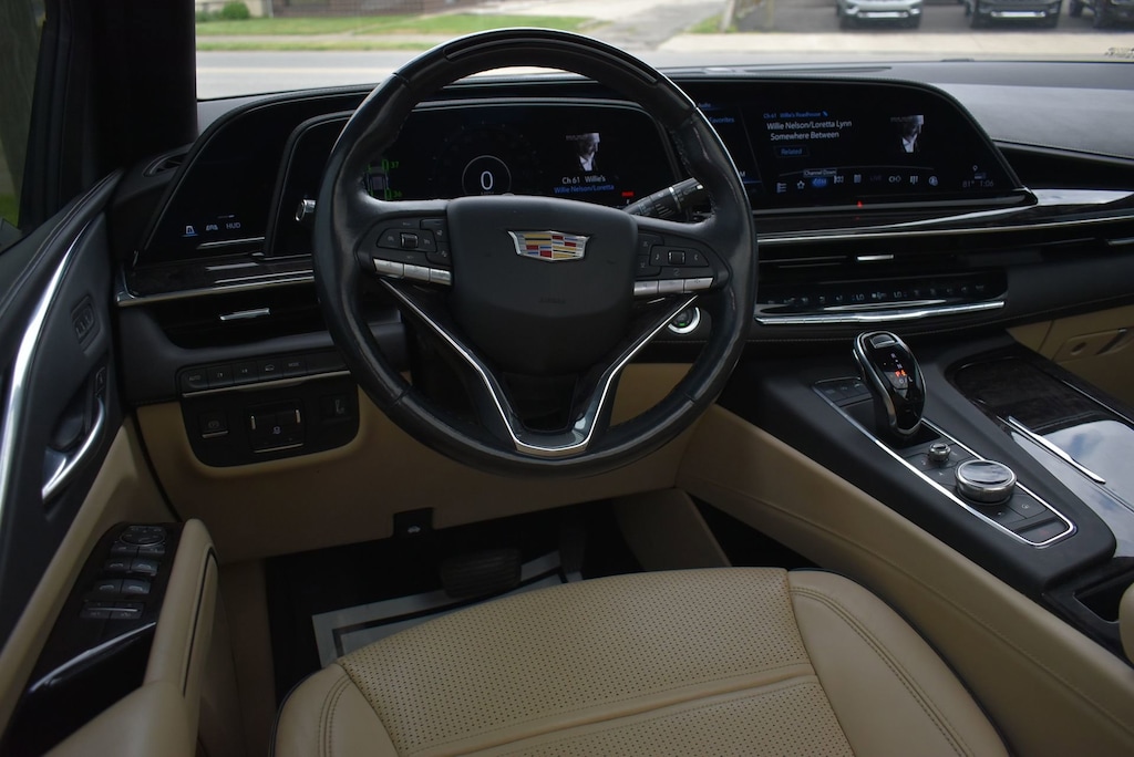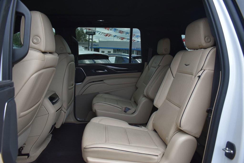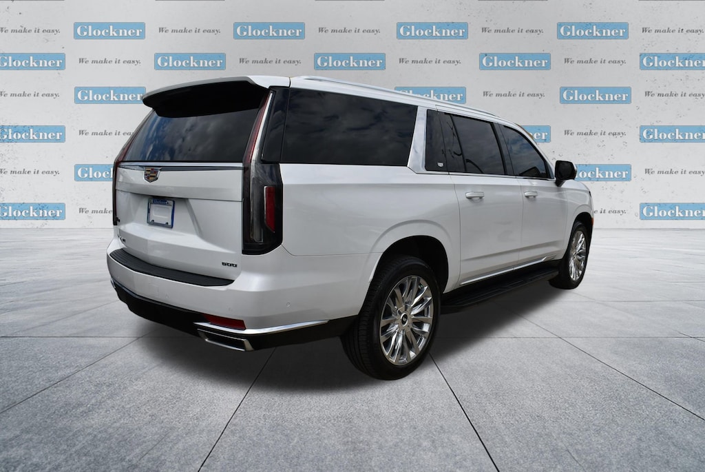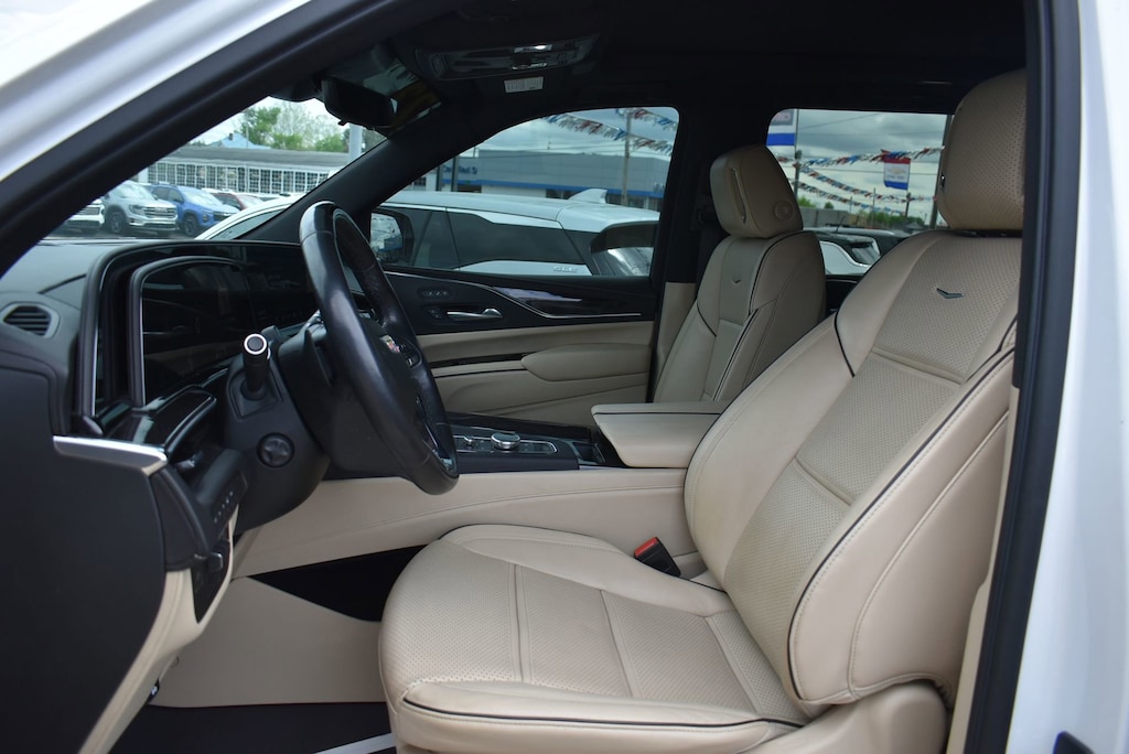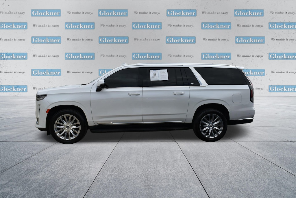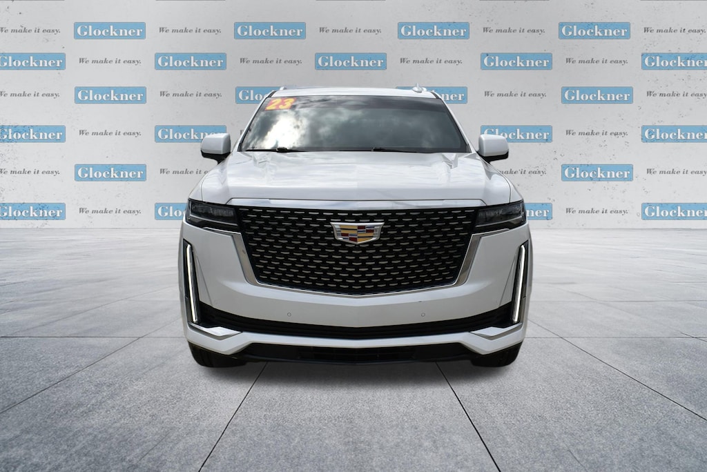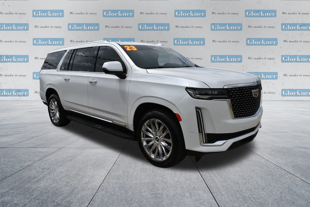 Glockner of Ironton is proud to offer this good-looking 2023 Cadillac Escalade ESV in Crystal White Tricoat. This 2023 Cadillac Escalade ESV has passed our comprehensive inspection and comes with the following features; Performance Package (Electronic Limited-Slip Differential, Hitch Guidance w/Hitch View, Integrated Trailer Brake Controller, Magnetic Ride Control Suspension, Smart Trailer Integration Indicator, and Trailer Side Blind Zone Alert), Preferred Equipment Group 1SB (Adaptive Cruise Control, AKG Studio 19-Speaker Audio System, Automatic Seat Belt Tightening, Door Lock & Latch Shields, Enhanced Automatic Emergency Braking, Enhanced Automatic Parking Assist, Glass Breakage Sensor, Heated & Ventilated Driver & Front Passenger Seats, Lane Change Alert w/Side Blind Zone Alert, Mechanical Limited-Slip Differential, Power Panoramic Tilt-Sliding Sunroof, Rear Camera Mirror, Rear Camera Mirror Washer, Rear Cross Traffic Alert, Reconfigurable Full-Color Head-Up Display, Reverse Automatic Braking, Running Board Assist Steps, Theft-Deterrent Alarm System, Vehicle Inclination Sensor, and Vehicle Interior Movement Sensor), AWD, 16.9 Diagonal OLED Infotainment Screen, 19 Speakers, 2-Presets Memory For Driver Seat Adjuster, 3.23 Axle Ratio, 3rd row seats: split-bench, 4-Way Power Driver Lumbar Seat Adjuster, 4-Way Power Front Passenger Lumbar Seat Adjuster, 4-Wheel Disc Brakes, 8-Way Power Driver Seat Adjuster, 8-Way Power Front Passenger Seat Adjuster, ABS brakes, Air Conditioning, Alloy wheels, AM/FM radio: SiriusXM with 360L, Apple CarPlay/Android Auto, Audio memory, Auto High-beam Headlights, Auto tilt-away steering wheel, Auto-dimming door mirrors, Automatic temperature control, Brake assist, Bumpers: body-color, Compass, Delay-off headlights, Driver door bin, Driver vanity mirror, Dual front impact airbags, Dual front side impact airbags, Electronic Stability Control, Emergency communication system: OnStar and Cadillac connected services capable, Exterior Parking Camera Rear, Four wheel independent suspension, Front anti-roll bar, Front Bucket Seats, Front Center Armrest w/Storage, Front dual zone A/C, Front reading lights, Fully automatic headlights, Garage door transmitter, HD Radio, Heads-Up Display, Heated door mirrors, Heated Driver & Front Passenger Seats, Heated front seats, Heated rear seats, Heated steering wheel, Illuminated entry, Leather Seating Surfaces w/Mini-Chevron Perf Inserts, Low tire pressure warning, Memory seat, Navigation System, Not Equipped w/2nd Row Express-Up Window Control, Not Equipped w/Wheel Locks (LPO), Occupant sensing airbag, Outside temperature display, Overhead airbag, Overhead console, Panic alarm, Passenger door bin, Passenger vanity mirror, Power door mirrors, Power driver seat, Power Liftgate, Power moonroof, Power passenger seat, Power steering, Power windows, Premium Smooth Ride Suspension, Radio data system, Radio: AM/FM w/Navigation, Rain sensing wipers, Rear air conditioning, Rear anti-roll bar, Rear reading lights, Rear window defroster, Rear window wiper, Remote keyless entry, Security system, SiriusXM w/360L, Speed control, Split folding rear seat, Spoiler, Steering wheel memory, Steering wheel mounted audio controls, Super Cruise, Tachometer, Teen Driver, Telescoping steering wheel, Tilt steering wheel, Traction control, Trip computer, Turn signal indicator mirrors, Variably intermittent wipers, Ventilated front seats, Voltmeter, Wheel Locks, Wheels: 22 14-Spoke Alloy w/Polished Finish, and Wireless Apple CarPlay/Wireless Android Auto.