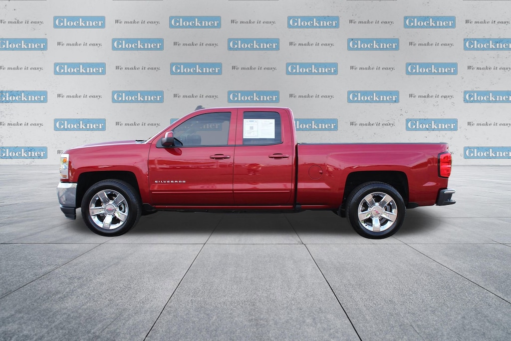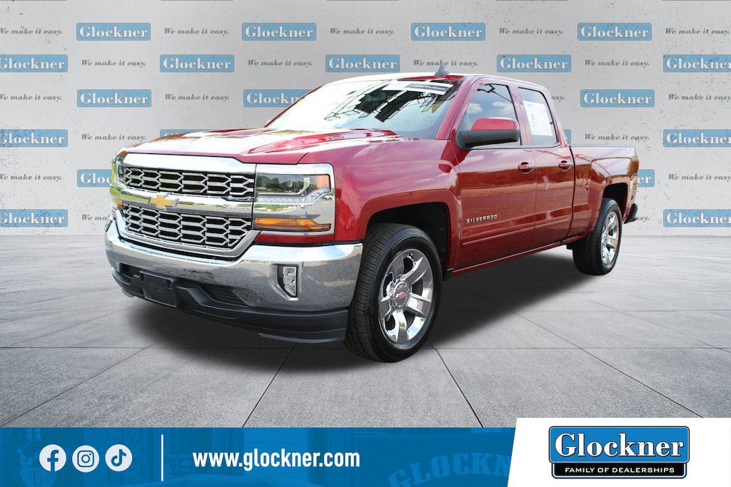 Glockner Chevrolet is proud to offer this trusty 2018 Chevrolet Silverado 1500 in Cajun Red Tintcoat. This 2018 Chevrolet Silverado 1500 has passed our comprehensive inspection and comes with the following features; All Star Edition (110-Volt AC Power Outlet, Dual-Zone Automatic Climate Control, Electric Rear-Window Defogger, Remote Vehicle Starter System, Theft Deterrent System (Unauthorized Entry), and Thin Profile LED Fog Lamps), Interior Convenience Package (LPO) (Console Insert Organizer Tray (LPO), Interior Driver Assist Handle (LPO), and Rear Under-Seat Composite Storage Bin (LPO)), LT Plus Package (Power Adjustable Pedals, Power Sliding Rear Window w/Defogger, Ultrasonic Rear Park Assist, and Universal Home Remote), Preferred Equipment Group 1LT (150 Amp Alternator, 4.2 Diagonal Color Display Driver Info Center, 6 Speaker Audio System, Bluetooth® For Phone, Body Color Bodyside Moldings, Body-Color Door Handles, Body-Color Mirror Caps, Body-Color Power Adjustable Heated Outside Mirrors, Chevrolet Connected Access, Chevrolet w/4G LTE, Chrome Grille Surround, Color-Keyed Carpeting w/Rubberized Vinyl Floor Mats, Deep-Tinted Glass, Driver & Front Passenger Illuminated Vanity Mirrors, EZ Lift & Lower Tailgate, Front Chrome Bumper, HD Radio, Leather Wrapped Steering Wheel w/Cruise Controls, Manual Tilt Wheel Steering Column, OnStar & Chevrolet Connected Services Capable, Power Windows w/Driver Express Up, Rear 60/40 Folding Bench Seat (Folds Up), Rear Chrome Bumper, Rear Wheelhouse Liners, Remote Keyless Entry, Remote Locking Tailgate, Single Slot CD/MP3 Player, and Steering Wheel Audio Controls), Trailering Package (Heavy-Duty Rear Locking Differential), Silverado 1500 LT LT1, 4D Double Cab, EcoTec3 5.3L V8, Cajun Red Tintcoat, 10-Way Power Driver's Seat Adjuster, 3.23 Rear Axle Ratio, 3.42 Rear Axle Ratio, 4-Wheel Disc Brakes, 40/20/40 Front Split Bench Seat, 6 Speakers, ABS brakes, Air Conditioning, Alloy wheels, AM/FM radio: SiriusXM, Auxiliary External Transmission Oil Cooler, Bodyside moldings, Brake assist, Bumpers: chrome, CD player, Cloth Seat Trim, Compass, Delay-off headlights, Driver door bin, Driver vanity mirror, Dual front impact airbags, Dual front side impact airbags, Electronic Stability Control, Exterior Parking Camera Rear, Floor Mounted Console, Front anti-roll bar, Front Center Armrest w/Storage, Front License Plate Kit, Front Power Reclining Bucket Seats, Front reading lights, Front wheel independent suspension, Fully automatic headlights, Heated door mirrors, Heated Driver & Front Passenger Seats, Heavy Duty Suspension, High-Intensity Discharge Headlights, Illuminated entry, Integrated Trailer Brake Controller, Low tire pressure warning, Manual Tilt/Telescoping Steering Column, Occupant sensing airbag, Outside temperature display, Overhead airbag, Overhead console, Panic alarm, Passenger door bin, Passenger vanity mirror, Power door mirrors, Power steering, Power windows, Premium audio system: Chevrolet MyLink, Radio data system, Radio: AM/FM 8 Diagonal Color Touch Screen, Rear reading lights, Rear step bumper, Remote keyless entry, SiriusXM Satellite Radio, Speed control, Speed-sensing steering, Split folding rear seat, Steering wheel mounted audio controls, Tachometer, Tilt steering wheel, Traction control, Trip computer, Variably intermittent wipers, Voltmeter, Wheel Locks (Set of 4) (LPO), Wheels: 17 x 8 Bright Machined Aluminum, and Wireless Charging.