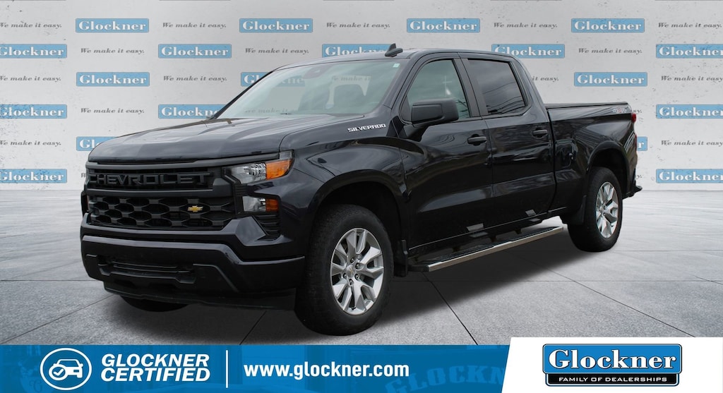 Glockner Chevrolet is proud to offer this dependable 2023 Chevrolet Silverado 1500 in Dark Ash Metallic. This 2023 Chevrolet Silverado 1500 has passed our comprehensive inspection and comes with the following features; Cloth Rear Seat w/Storage Package, Custom Convenience Package (Electric Rear-Window Defogger, EZ Lift Power Lock & Release Tailgate, LED Cargo Area Lighting, Remote Vehicle Starter System, and Theft Deterrent System (Unauthorized Entry)), Custom Value Package, High Capacity Suspension Package, Preferred Equipment Group 1CX (10-Way Power Driver Seat w/Lumbar, 120-Volt Bed Mounted Power Outlet, 120-Volt Instrument Panel Power Outlet, 3.5 Monochromatic Display Driver Info Center, Bluetooth® For Phone, Chevrolet Connected Access Capable, Color-Keyed Carpeting Floor Covering, Compass, Deep-Tinted Glass, Dual Rear USB Ports (Charge Only), Electrical Steering Column Lock, Electronic Cruise Control, Front Frame-Mounted Black Recovery Hooks, Front Rubberized Vinyl Floor Mats, HD Rear Vision Camera, Manual Tilt Wheel Steering Column, OnStar & Chevrolet Connected Services Capable, Power Front Windows w/Driver Express Up/Down, Power Front Windows w/Passenger Express Down, Power Rear Windows w/Express Down, Rear 60/40 Folding Bench Seat (Folds Up), Rear Rubberized-Vinyl Floor Mats, Remote Keyless Entry, SiriusXM Radio, Standard Tailgate, Wi-Fi Hot Spot Capable, and Wireless Phone Projection), Trailering Package (Hitch Guidance), Silverado 1500 Custom, Glockner Certified Certified, 4D Crew Cab, 4WD, 3.42 Rear Axle Ratio, 4-Wheel Disc Brakes, 40/20/40 Front Split-Bench Seat, 6 Speakers, 6-Speaker Audio System, ABS brakes, Air Conditioning, All-Weather Floor Liner (LPO), Alloy wheels, AM/FM radio: SiriusXM, Apple CarPlay/Android Auto, Auto High-beam Headlights, Auto-Locking Rear Differential, Automatic Emergency Braking, Brake assist, Bumpers: body-color, Chevytec Spray-On Black Bedliner, Cloth Seat Trim, Delay-off headlights, Driver door bin, Driver vanity mirror, Dual front impact airbags, Dual front side impact airbags, Electronic Stability Control, Following Distance Indicator, Forward Collision Alert, Front anti-roll bar, Front Center Armrest w/Storage, Front License Plate Kit, Front Pedestrian Braking, Front reading lights, Front wheel independent suspension, Fully automatic headlights, Heated door mirrors, Illuminated entry, Integrated Trailer Brake Controller, IntelliBeam Automatic High Beam On/Off, Lane Keep Assist w/Lane Departure Warning, Low tire pressure warning, Not Equipped w/Rear USB Ports, Not Equipped w/Steering Column Lock, Occupant sensing airbag, Outside temperature display, Overhead airbag, Overhead console, Panic alarm, Passenger door bin, Passenger vanity mirror, Power door mirrors, Power driver seat, Power steering, Power windows, Premium audio system: Chevrolet Infotainment 3, Radio data system, Radio: Chevrolet Infotainment 3 System, Rear reading lights, Rear step bumper, Rear Wheelhouse Liners, Rear window defroster, Remote keyless entry, Security system, Speed control, Speed-sensing steering, Split folding rear seat, Tachometer, Tilt steering wheel, Traction control, Trip computer, Variably intermittent wipers, Voltmeter, and Wheels: 20 x 9 Bright Silver Painted Aluminum.