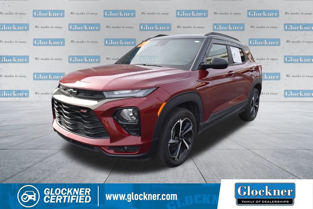 Certified. Certification Program Details: 12 Months or 12,000 miles Comprehensive Warranty. 5 Years or 100,000 miles Powertrain Warranty.Glockner of Ironton is proud to offer this terrific-looking 2023 Chevrolet TrailBlazer in Crimson Metallic. This 2023 Chevrolet TrailBlazer has passed our comprehensive inspection and comes with the following features; Preferred Equipment Group 1RS (Heated Steering Wheel), Glockner Certified Certified, 2-Way Adjustable Front Head Restraints, 2-Way Power Driver Lumbar Seat Adjuster, 3.17 Axle Ratio, 4-Way Manual Front Passenger Seat Adjuster, 4-Wheel Disc Brakes, 6 Speakers, 6-Speaker Audio System Feature w/Amplifier, 7 Diagonal Color Touchscreen, 8-Way Power Driver Seat Adjuster, ABS brakes, Air Conditioning, Alloy wheels, AM/FM radio: SiriusXM, Auto High-beam Headlights, Brake assist, Bumpers: body-color, Cloth w/Leatherette Seat Trim, Compass, Delay-off headlights, Driver door bin, Driver vanity mirror, Dual front impact airbags, Dual front side impact airbags, Electronic Stability Control, Emergency communication system: OnStar and Chevrolet connected services capable, Exterior Parking Camera Rear, Flat-Folding Front Passenger Seatback, Front anti-roll bar, Front Bucket Seats, Front Center Armrest, Front fog lights, Front License Plate Bracket, Front reading lights, Front wheel independent suspension, Fully automatic headlights, Heated door mirrors, Heated Driver & Front Passenger Seats, Heated front seats, Heated steering wheel, Illuminated entry, Knee airbag, Leather Shift Knob, Leather steering wheel, Low tire pressure warning, Mosaic Black Metallic Two-Tone Roof, Occupant sensing airbag, Overhead airbag, Overhead console, Panic alarm, Passenger door bin, Passenger vanity mirror, Power door mirrors, Power driver seat, Power steering, Power windows, Radio data system, Radio: Chevrolet Infotainment 3 System, Rear seat center armrest, Rear side impact airbag, Rear window defroster, Rear window wiper, Remote keyless entry, Ride & Handling Suspension, Security system, SiriusXM Radio, Speed control, Split folding rear seat, Spoiler, Steering wheel mounted audio controls, Tachometer, Telescoping steering wheel, Tilt steering wheel, Traction control, Trip computer, Variably intermittent wipers, Wheels: 18 High Gloss Black Machined Aluminum, and Wireless Apple CarPlay/Android Auto.26/30 City/Highway MPG