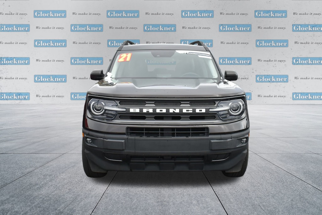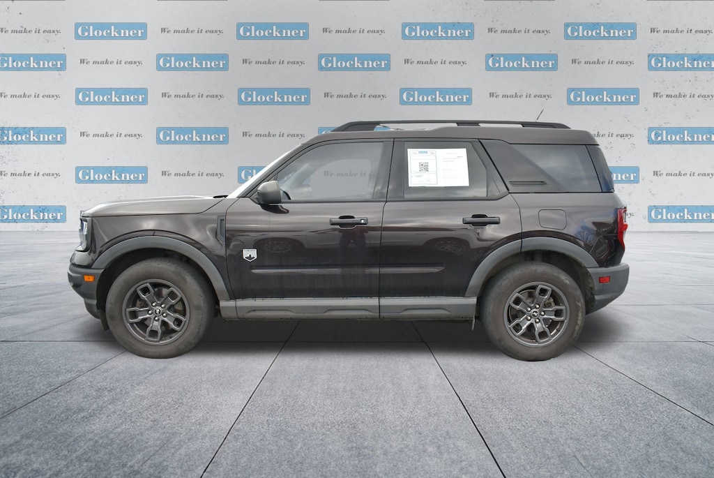 Glockner of Ironton is proud to offer this terrific 2021 Ford Bronco Sport in Brown. This 2021 Ford Bronco Sport has passed our comprehensive inspection and comes with the following features; Equipment Group 200A, Glockner Certified Certified, 3.80 Axle Ratio, 4-Wheel Disc Brakes, 6 Speakers, ABS brakes, Air Conditioning, Alloy wheels, AM/FM radio: SiriusXM, AM/FM Stereo, Auto High-beam Headlights, Automatic temperature control, Brake assist, Compass, Delay-off headlights, Driver door bin, Driver vanity mirror, Dual front impact airbags, Dual front side impact airbags, Electronic Stability Control, Emergency communication system: SYNC 3 911 Assist, Exterior Parking Camera Rear, Four wheel independent suspension, Front anti-roll bar, Front Bucket Seats, Front Center Armrest, Front fog lights, Front reading lights, Fully automatic headlights, Heated door mirrors, Illuminated entry, Knee airbag, Low tire pressure warning, Occupant sensing airbag, Outside temperature display, Overhead airbag, Overhead console, Panic alarm, Passenger door bin, Passenger vanity mirror, Power door mirrors, Power steering, Power windows, Radio data system, Rear anti-roll bar, Rear reading lights, Rear seat center armrest, Rear window defroster, Rear window wiper, Remote keyless entry, Roof rack: rails only, Security system, SiriusXM Radio, Speed control, Speed-sensing steering, Speed-Sensitive Wipers, Split folding rear seat, Steering wheel mounted audio controls, SYNC 3 Communications & Entertainment System, SYNC 3/Apple CarPlay/Android Auto, Tachometer, Telescoping steering wheel, Tilt steering wheel, Traction control, Trip computer, Unique Cloth Front Bucket Seats, Variably intermittent wipers, and Wheels: 17 Carbonized Gray-Painted Aluminum.