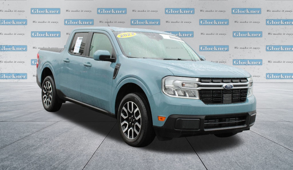 Glockner Chevrolet is proud to offer this good-looking 2022 Ford Maverick in Area 51. This 2022 Ford Maverick has passed our comprehensive inspection and comes with the following features; Ford Co-Pilot360 (BLIS Blind Spot Info System w/Cross-Traffic Alert, Lane-Keeping System, and Manual-Folding Power Glass Sideview Mirrors), Lariat Luxury Package (4-Way Front Headrest, 400W Inverter w/USB Console Rear, Adaptive Cruise Control w/Stop & Go, Bed Tie Down Locking Rails, Evasive Steering Assist, Heated Mirror, Heated Seats, Heated Steering Wheel, Lane Centering, LED Box Lighting, Radio: B&O Sound System by Bang & Olufsen, Rear Parking Sensors, Remote Start System, SiriusXM Radio, Spray-In Bedliner, SYNC 3 Communications & Entertainment System, Trailer Hitch Receiver w/4-Pin Connector, Windshield Wiper De-Icer, and Wireless Charging Pad), Maverick Lariat, Glockner Certified Certified, 4D Crew Cab, 2.5L I-4 Hybrid, Power Moonroof, 2.91 Axle Ratio, 4-Wheel Disc Brakes, 6 Speakers, ABS brakes, Air Conditioning, AM/FM radio, Apple CarPlay/Android Auto, Auto High-beam Headlights, Automatic temperature control, Brake assist, Bumpers: body-color, Compass, Delay-off headlights, Driver door bin, Driver vanity mirror, Dual front impact airbags, Dual front side impact airbags, Electronic Stability Control, Exterior Parking Camera Rear, Front anti-roll bar, Front Bucket Seats, Front Center Armrest, Front reading lights, Front wheel independent suspension, Fully automatic headlights, Illuminated entry, Knee airbag, Low tire pressure warning, Occupant sensing airbag, Outside temperature display, Overhead airbag, Overhead console, Panic alarm, Passenger door bin, Passenger vanity mirror, Power steering, Power windows, Radio data system, Radio: AM/FM Stereo w/6 Speakers, Rear anti-roll bar, Rear step bumper, Remote keyless entry, Speed-sensing steering, Steering wheel mounted audio controls, Telescoping steering wheel, Tilt steering wheel, Traction control, and Trip computer.