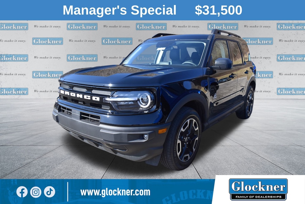 Glockner Ford Southpoint is proud to offer this attractive 2024 Ford Bronco Sport in Shadow Black. This 2024 Ford Bronco Sport has passed our comprehensive inspection and comes with the following features; Equipment Group 300A, Ford Co-Pilot360 Assist+ (Voice-Activated Touchscreen Navigation System, Evasive Steering Assist, and Intelligent Adaptive Cruise Control w/Stop & Go), Tech Package (Universal Garage Door Opener (UGDO), Wireless Charging Pad, and HD Radio), 1.5L EcoBoost, 8-Speed Automatic, 4WD, 4-Wheel Disc Brakes, ABS brakes, Four wheel independent suspension, Front dual zone A/C, Heated door mirrors, Low tire pressure warning, Rain sensing wipers, Speed-sensing steering, Speed-Sensitive Wipers, SYNC 3 Communications & Entertainment System, Traction control, 3.80 Axle Ratio, 6 Speakers, Air Conditioning, Alloy wheels, AM/FM radio: SiriusXM, AM/FM Stereo, Auto High-beam Headlights, Auto-dimming Rear-View mirror, Automatic temperature control, Brake assist, Compass, Delay-off headlights, Driver door bin, Driver vanity mirror, Dual front impact airbags, Dual front side impact airbags, Electronic Stability Control, Emergency communication system: SYNC 3 911 Assist, Front anti-roll bar, Front Bucket Seats, Front Center Armrest, Front fog lights, Front reading lights, Fully automatic headlights, Heated front seats, Heated steering wheel, Illuminated entry, Knee airbag, Memory seat, Occupant sensing airbag, Outside temperature display, Overhead airbag, Overhead console, Panic alarm, Passenger door bin, Passenger vanity mirror, Power door mirrors, Power driver seat, Power passenger seat, Power steering, Power windows, Premium-Trimmed Heated Sport Contour Bucket Seats, Radio data system, Rear anti-roll bar, Rear Parking Sensors, Rear reading lights, Rear seat center armrest, Rear window defroster, Rear window wiper, Remote keyless entry, Security system, SiriusXM, Speed control, Split folding rear seat, Steering wheel mounted audio controls, Tachometer, Telescoping steering wheel, Tilt steering wheel, Trip computer, Variably intermittent wipers, and Wheels: 18" Ebony Black-Painted Aluminum.
