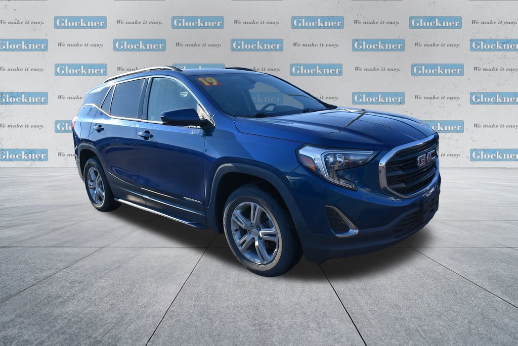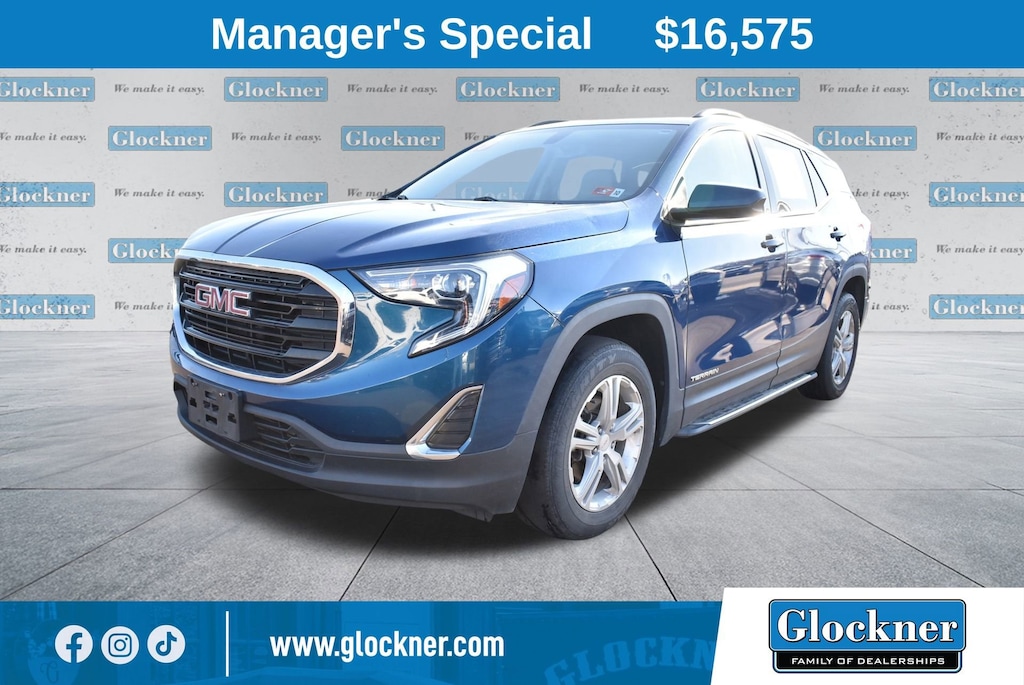 Glockner of Ironton is proud to offer this superb-looking 2019 GMC Terrain in Blue Emerald Metallic. This 2019 GMC Terrain has passed our comprehensive inspection and comes with the following features; Driver Convenience Package (8-Way Power Driver Seat Adjuster, Driver & Front Passenger Heated Seats, Dual-Zone Automatic Climate Control, Power Driver Lumbar Control, Remote Start, and Roof-Mounted Luggage Rack Black Side Rails), Hit The Road Package (Molded Assist Steps and Roof Rack Cross Rails (LPO)), Infotainment Package I (110-Volt Power Outlet, 2 USB Data Ports, 2 USB Data Ports w/SD Card Reader, 4.2 Multi-Color Enhanced Driver Information Screen, HD Rear Vision Camera, Radio: GMC Infotainment Audio System w/Navigation, and SiriusXM Radio), License Plate Front Mounting Package, Preferred Equipment Group 3SA, AWD, 2 USB Data Ports w/Auxiliary Input Jack, 3.47 Axle Ratio, 4-Way Manual Driver's Seat, 4-Way Manual Front Passenger Seat, 4-Wheel Disc Brakes, 6 Speakers, 6-Speaker Audio System Feature, ABS brakes, Air Conditioning, Alloy wheels, AM/FM radio, Apple CarPlay/Android Auto, Auto-dimming Rear-View mirror, Bluetooth® For Phone, Brake assist, Bumpers: body-color, Compass, Delay-off headlights, Driver door bin, Driver vanity mirror, Dual front impact airbags, Dual front side impact airbags, Electronic Stability Control, Emergency communication system, Exterior Parking Camera Rear, Four wheel independent suspension, Front anti-roll bar, Front Bucket Seats, Front Center Armrest, Front reading lights, Fully automatic headlights, Heated door mirrors, High-Intensity Discharge Headlights, Illuminated entry, Low tire pressure warning, Occupant sensing airbag, Outside temperature display, Overhead airbag, Overhead console, Panic alarm, Passenger door bin, Passenger vanity mirror, Power door mirrors, Power steering, Power windows, Premium Cloth Seat Trim, Radio data system, Radio: GMC Infotainment Audio System w/7 Display, Rear anti-roll bar, Rear seat center armrest, Rear window defroster, Rear window wiper, Remote keyless entry, Security system, Speed control, Speed-sensing steering, Split folding rear seat, Spoiler, Steering wheel mounted audio controls, Tachometer, Telescoping steering wheel, Tilt steering wheel, Traction control, Trip computer, Universal Powered Tablet Holder (LPO), Variably intermittent wipers, and Wheels: 17 x 7 Silver Painted Aluminum.