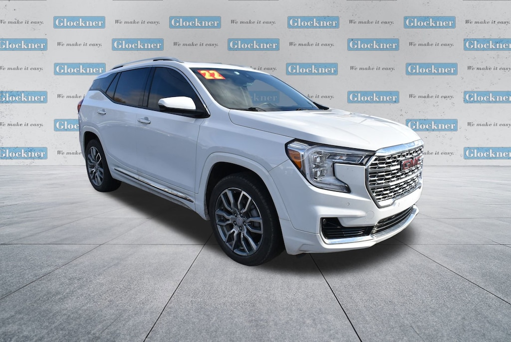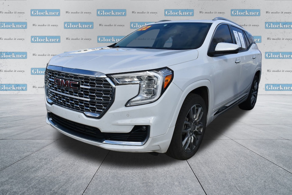 Glockner of Ironton is proud to offer this good-looking 2022 GMC Terrain in Summit White. This 2022 GMC Terrain has passed our comprehensive inspection and comes with the following features; Preferred Equipment Group 5SA, Glockner Certified Certified, AWD, 2 USB Data Ports, 2 USB Data Ports w/SD Card Reader, 3 Years of OnStar & Connected Services Plan, 3.47 Axle Ratio, 4-Wheel Disc Brakes, 6-Way Power Front Passenger Seat, 7 Speakers, 8-Way Power Driver Seat Adjuster, ABS brakes, Air Conditioning, Alloy wheels, AM/FM radio: SiriusXM, Auto High-beam Headlights, Auto-dimming Rear-View mirror, Automatic temperature control, Bluetooth® For Phone, Brake assist, Bumpers: body-color, Compass, Delay-off headlights, Driver & Front Passenger Heated Seats, Driver door bin, Driver vanity mirror, Dual front impact airbags, Dual front side impact airbags, Electronic Stability Control, Emergency communication system, Four wheel independent suspension, Front anti-roll bar, Front Bucket Seats, Front Center Armrest, Front dual zone A/C, Front fog lights, Front Passenger 2-Way Power Lumbar, Front reading lights, Fully automatic headlights, Garage door transmitter, Heads-Up Display, Heated door mirrors, Heated front seats, Heated steering wheel, Illuminated entry, Lane Departure Warning System, Low tire pressure warning, Memory seat, Navigation system: GMC Connected Navigation, Occupant sensing airbag, Outside temperature display, Overhead airbag, Overhead console, Panic alarm, Passenger door bin, Passenger vanity mirror, Perforated Leather-Appointed Seat Trim, Power door mirrors, Power Driver Lumbar Control, Power driver seat, Power Liftgate, Power passenger seat, Power steering, Power windows, Premium 7-Speaker Bose Sound System w/Amplifier, Radio data system, Radio: GMC Infotainment Audio System w/Navigation, Rear anti-roll bar, Rear seat center armrest, Rear window defroster, Rear window wiper, Remote keyless entry, Roof rack: rails only, Security system, SiriusXM Radio, Skyscape Power Sunroof w/Power Sunscreen, Speed control, Speed-sensing steering, Split folding rear seat, Spoiler, Steering wheel mounted audio controls, Tachometer, Telescoping steering wheel, Tilt steering wheel, Traction control, Trip computer, Turn signal indicator mirrors, Variably intermittent wipers, Wheels: 19 x 7.5 Bright Machined Aluminum, and Wireless Apple CarPlay/Wireless Android Auto.