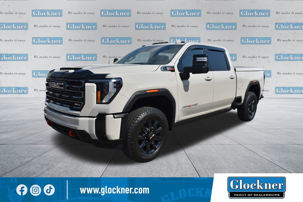Glockner of Ironton is proud to offer this terrific 2026 GMC Sierra 2500HD in Coastal Dune. This 2026 GMC Sierra 2500HD has passed our comprehensive inspection and comes with the following features; AT4 Preferred Package (LED Smoked Amber Roof Marker Lamps, Power Sliding Rear Window with Defogger, and Universal Home Remote), AT4 Premium Plus Package (Power Sunroof), Preferred Equipment Group 4SB (120-Volt Bed Mounted Power Outlet, 120-Volt Instrument Panel Power Outlet, 2 Charge-Only Rear USB Ports, 2 Charge/Data USB Ports Inside Center Console, 2 USB Ports, 2-Speed Active Transfer Case, Bed View Camera with Two Trailer Camera Provisions, Bose Premium 7-Speaker Sound System, Deep-Tinted Glass, Electric Rear-Window Defogger, Floor-Mounted Center Console, Front Premium Floor Liners with Removable Carpet Insert, Front Rain-Sensing Wipers, Gloss Black Header Grille and Grille Insert Bars, HD Surround Vision, Heated 2nd Row Outboard Seats, Heated Driver and Front Outboard Passenger Seats, Keyless Open and Start, LED Cargo Area Lighting, Manual Tilt-Wheel/Telescoping Steering Column, OnStar Services Capable, Power Front Passenger Windows with Express Up/Down, Push Button Start, Rear Cross Traffic Alert, Rear Premium Floor Liners with Removable Carpet Insert, Rear Wheelhouse Liners, Remote Vehicle Starter System, Safety Alert Seat, SiriusXM with 360L Trial Subscription, Spray-on Pickup Bedliner with GMC Logo, Steering Wheel Audio Controls, Trailer Cam Provisions and Trailer Viewing Software, Trailer Side Blind Zone Alert, Ultrasonic Front and Rear Park Assist, Unauthorized Entry Theft-Deterrent System, Ventilated Driver and Front Passenger Seats, Wireless Charging, and Wireless Phone Projection), Snow Plow Prep/Camper Package (220-Amp Alternator), Technology Package (Inside Rearview Auo-Dimming Rear Camera Mirror and Multicolor 15 Diagonal Head-Up Display), X31 Off-Road Package (Hill Descent Control and Off-Road Suspension), 10-Speed Automatic, 4WD, Jet Black With Kalahari Accents Leather, 10-Way Power Driver Seat Adjuster with Lumbar, 10-Way Power Passenger Seat Adjuster with Lumbar, 3.42 Axle Ratio, 3.73 Rear Axle Ratio, 4-Wheel Disc Brakes, 7 Speakers, ABS brakes, Air Conditioning, Alloy wheels, AM/FM radio: SiriusXM with 360L, Apple CarPlay/Android Auto, Auto High-beam Headlights, Auto-dimming door mirrors, Auto-dimming Rear-View mirror, Automatic Emergency Braking, Automatic temperature control, Body Color Wheel Arch Moldings, Brake assist, Buckle to Drive, Bumpers: body-color, Compass, Delay-off headlights, Driver door bin, Driver Memory, Driver vanity mirror, Dual front impact airbags, Dual front side impact airbags, Electronic Stability Control, Emergency communication system: OnStar, Engine Block Heater, Exhaust Brake, Following Distance Indicator, Forward Collision Alert, Front anti-roll bar, Front Bucket Seats, Front Center Armrest, Front dual zone A/C, Front fog lights, Front Pedestrian Braking, Front reading lights, Front wheel independent suspension, Fully automatic headlights, Heated door mirrors, Heated front seats, Heated rear seats, Heated steering wheel, Heavy-Duty 80 Amp Battery, Hitch Guidance with Hitch View, Illuminated entry, in-Vehicle Trailering System App, IntelliBeam Automatic High Beam on/Off, Lane Departure Warning System, Low tire pressure warning, Memory seat, Occupant sensing airbag, Off-Road High Clearance Step, Outside temperature display, Overhead airbag, Overhead console, Panic alarm, Passenger door bin, Passenger vanity mirror, Perforated Leather-Appointed Front Seat Trim, Pickup Box, Power door mirrors, Power driver seat, Power passenger seat, Power steering, Power windows, Power-Retractable Black Assist Steps, Premium audio system: Premium GMC Infotainment System, Radio: AM/FM Stereo with Premium GMC Infotainment System, Rain sensing wipers, Rear reading lights, Rear seat center armrest, Rear step bumper, Rear window defroster, Remote keyless entry, Security system, Speed control, Speed-sensin