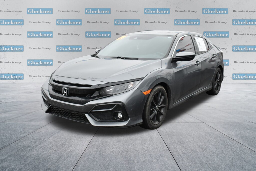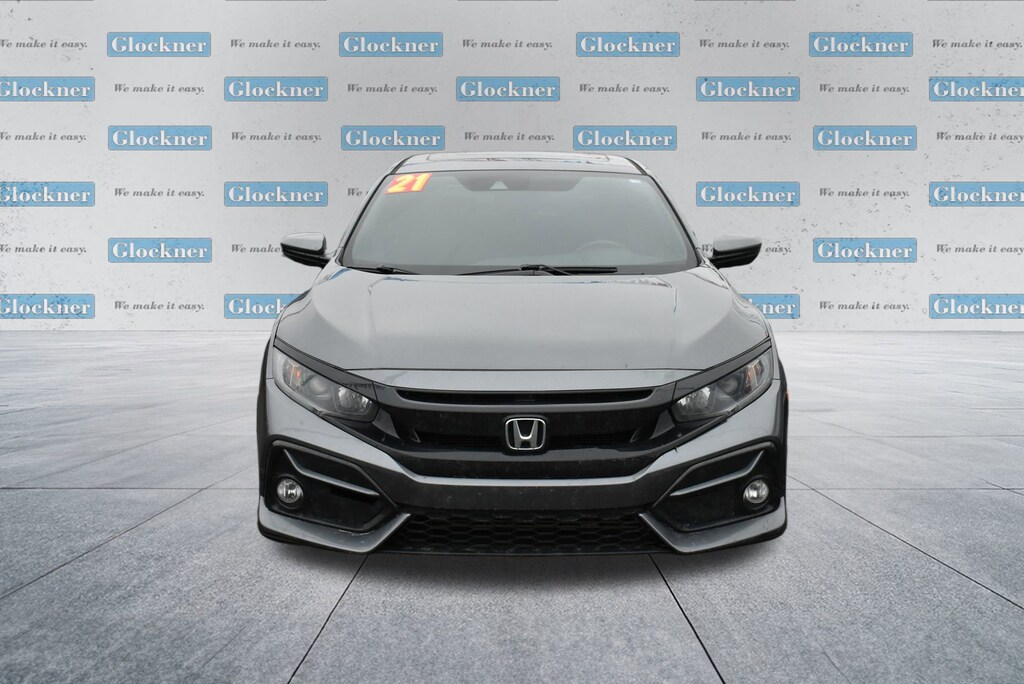 Glockner of Ironton is proud to offer this superb-looking 2021 Honda Civic in Modern Steel Metallic. This 2021 Honda Civic has passed our comprehensive inspection and comes with the following features; Black Cloth, 4-Wheel Disc Brakes, 8 Speakers, ABS brakes, Adaptive Cruise Control: Adaptive Cruise Control (ACC) with Low-Speed Follow, Air Conditioning, Alloy wheels, AM/FM radio: SiriusXM, Apple CarPlay/Android Auto, Auto High-beam Headlights, Automatic temperature control, Brake assist, Bumpers: body-color, Delay-off headlights, Driver door bin, Driver vanity mirror, Dual front impact airbags, Dual front side impact airbags, Electronic Stability Control, Emergency communication system: HondaLink, Exterior Parking Camera Rear, Fabric Seating Surfaces, Forward collision: Collision Mitigation Braking System (CMBS) + FCW mitigation, Four wheel independent suspension, Front anti-roll bar, Front Bucket Seats, Front Center Armrest, Front dual zone A/C, Front fog lights, Front reading lights, Fully automatic headlights, Heated door mirrors, Heated Front Bucket Seats, Heated front seats, Illuminated entry, Lane departure: Lane Keeping Assist System (LKAS) active, Leather Shift Knob, Low tire pressure warning, Occupant sensing airbag, Outside temperature display, Overhead airbag, Overhead console, Panic alarm, Passenger door bin, Passenger vanity mirror, Power door mirrors, Power driver seat, Power moonroof, Power steering, Power windows, Radio data system, Radio: 180-Watt HD Audio System, Rear anti-roll bar, Rear seat center armrest, Rear window defroster, Rear window wiper, Remote keyless entry, Security system, Speed control, Speed-sensing steering, Split folding rear seat, Spoiler, Steering wheel mounted audio controls, Tachometer, Telescoping steering wheel, Tilt steering wheel, Traction control, Trip computer, and Variably intermittent wipers.