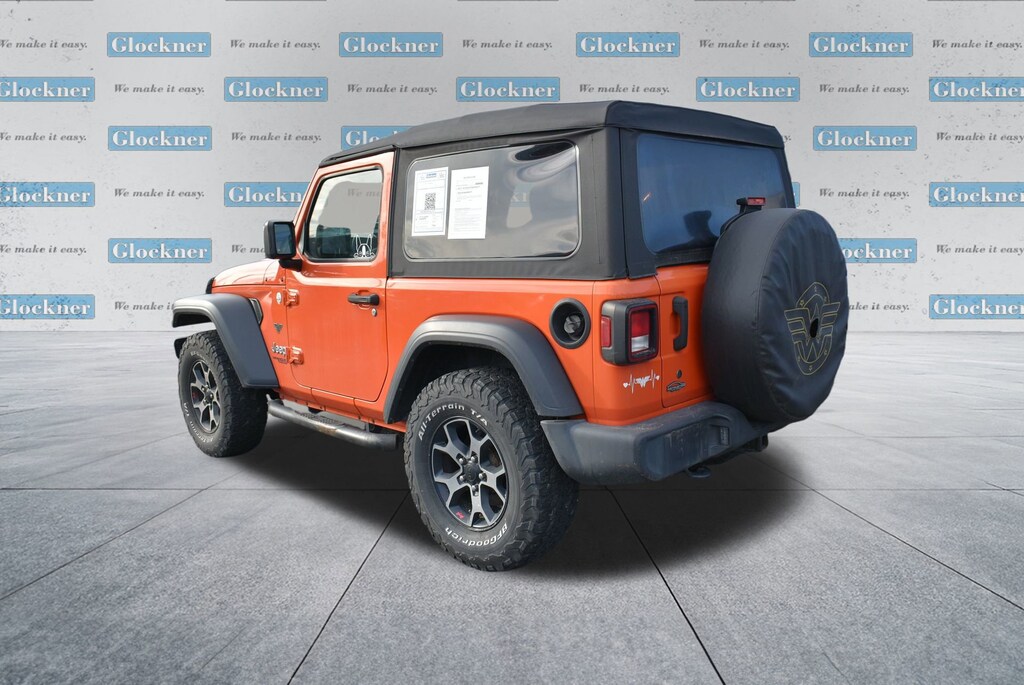 Certified. Certification Program Details: 12 Months or 12,000 miles Comprehensive Warranty. 5 Years or 100,000 miles Powertrain Warranty.Glockner of Ironton is proud to offer this good-looking and fun 2018 Jeep Wrangler in Punkn Metallic Clearcoat. This 2018 Jeep Wrangler has passed our comprehensive inspection and comes with the following features; Quick Order Package 23B, Glockner Certified Certified, 1-Yr SiriusXM Radio Service, 3.45 Rear Axle Ratio, 4-Wheel Disc Brakes, 8 Speakers, ABS brakes, Air Conditioning, AM/FM radio, Anti-Spin Differential Rear Axle, Brake assist, Bridgestone Brand Tires, Cloth Low-Back Bucket Seats, Compass, Deep Tint Sunscreen Windows, Delay-off headlights, Driver door bin, Driver vanity mirror, Dual front impact airbags, Dual front side impact airbags, Electronic Stability Control, For More Info, Call 800-643-2112, Front anti-roll bar, Front Bucket Seats, Front Center Armrest w/Storage, Front fog lights, Front reading lights, Integrated roll-over protection, Low tire pressure warning, Manufacturer's Statement of Origin (DISC), Non-Lock Fuel Cap w/o Discriminator, Normal Duty Suspension, Occupant sensing airbag, Outside temperature display, ParkView Rear Back-Up Camera, Passenger door bin, Passenger vanity mirror, Power steering, Radio data system, Radio: Uconnect 3 w/5 Display, Rear anti-roll bar, Rear reading lights, SiriusXM Satellite Radio, Speed control, Steering wheel mounted audio controls, Tachometer, Telescoping steering wheel, Tilt steering wheel, Traction control, Trip computer, Variably intermittent wipers, and Wheels: 17 x 7.5 Black Steel Styled.Odometer is 12999 miles below market average!Awards:* 2018 KBB.com 10 Favorite New-for-2018 Cars * 2018 KBB.com 10 Most Fun SUVs * 2018 KBB.com Best Resale Value Awards * 2018 KBB.com 10 Most Awarded Cars * 2018 KBB.com 10 Coolest Cars Under $25,000 * 2018 KBB.com 10 Most Awarded Brands