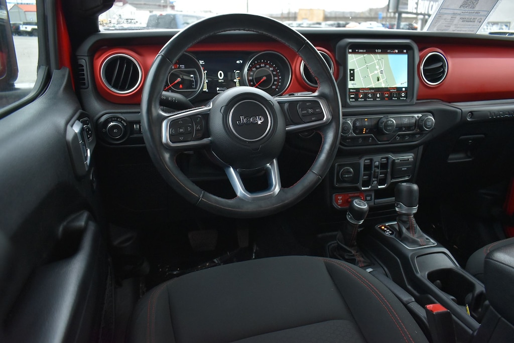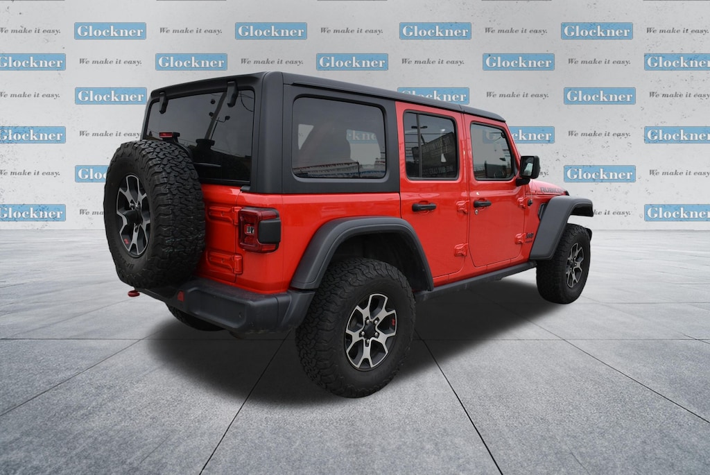 Glockner Chrysler Dodge Jeep Ram of Ashland is proud to offer this handsome-looking and fun 2020 Jeep Wrangler in Firecracker Red Clearcoat. This 2020 Jeep Wrangler has passed our comprehensive inspection and comes with the following features; 8.4" Radio & Premium Audio Group (1-Year SiriusXM Guardian Trial, 4G LTE Wi-Fi Hot Spot, 5-Year SiriusXM Traffic Service, 5-Year SiriusXM Travel Link Service, 8.4" Touchscreen Display, Alpine Premium Audio System, Auto-Dimming Rear-View Mirror, Emergency/Assistance Call, For Details, Visit DriveUconnect.com, GPS Navigation, HD Radio, Radio: Uconnect 4C Nav w/8.4" Display, SiriusXM Traffic Plus, and SiriusXM Travel Link), Cold Weather Group (Heated Front Seats and Heated Steering Wheel), LED Lighting Group (Daytime Running Lamps LED Accents, Front LED Fog Lamps, LED Reflector Headlamps, and LED Taillamps), Quick Order Package 22R, Safety Group (Blind Spot & Cross Path Detection and ParkSense Rear Park Assist System), 4-Wheel Disc Brakes, 4.10 Rear Axle Ratio, 8 Speakers, ABS brakes, Air Conditioning, Alloy wheels, AM/FM radio: SiriusXM, Apple CarPlay/Android Auto, Automatic temperature control, Aux Battery, BF Goodrich Brand Tires, Black 3-Piece Hard Top, Brake assist, Compass, Delay-off headlights, Driver door bin, Driver vanity mirror, Dual front impact airbags, Dual front side impact airbags, Electronic Stability Control, Freedom Panel Storage Bag, Front anti-roll bar, Front Bucket Seats, Front Center Armrest w/Storage, Front dual zone A/C, Front fog lights, Front reading lights, Fully automatic headlights, Garage door transmitter, Heated door mirrors, Illuminated entry, Integrated roll-over protection, Leather steering wheel, Low tire pressure warning, Manufacturer's Statement of Origin, No Soft Top, Non-Lock Fuel Cap w/o Discriminator, Occupant sensing airbag, Outside temperature display, Panic alarm, ParkView Rear Back-Up Camera, Passenger door bin, Passenger vanity mirror, Performance Suspension, Power door mirrors, Power steering, Power windows, Premium Cloth Low-Back Bucket Seats, Radio data system, Radio: Uconnect 4 w/7" Display, Rear anti-roll bar, Rear reading lights, Rear Window Defroster, Rear Window Wiper/Washer, Remote keyless entry, Remote Start System, Security system, Speed control, Split folding rear seat, Steering wheel mounted audio controls, Stop-Start Dual Battery System, Tachometer, Telescoping steering wheel, Tilt steering wheel, Traction control, Trip computer, Variably intermittent wipers, Voltmeter, and Wheels: 17" x 7.5" Machined w/Black PocketS.