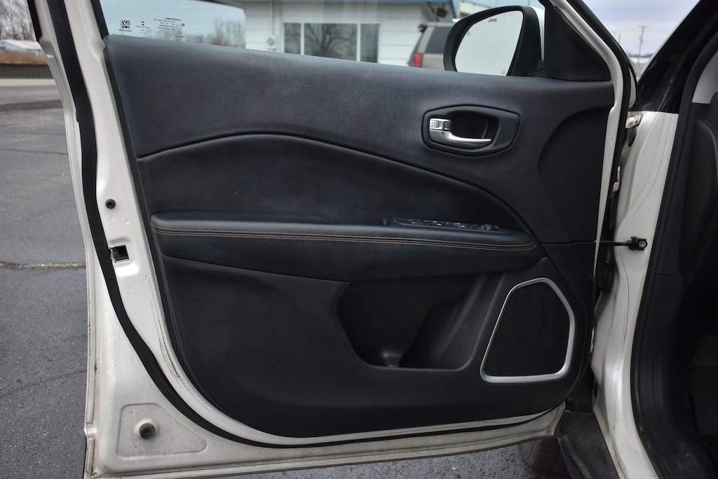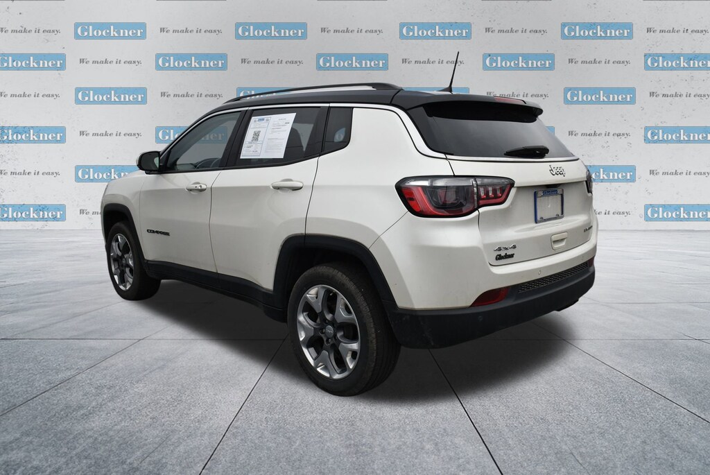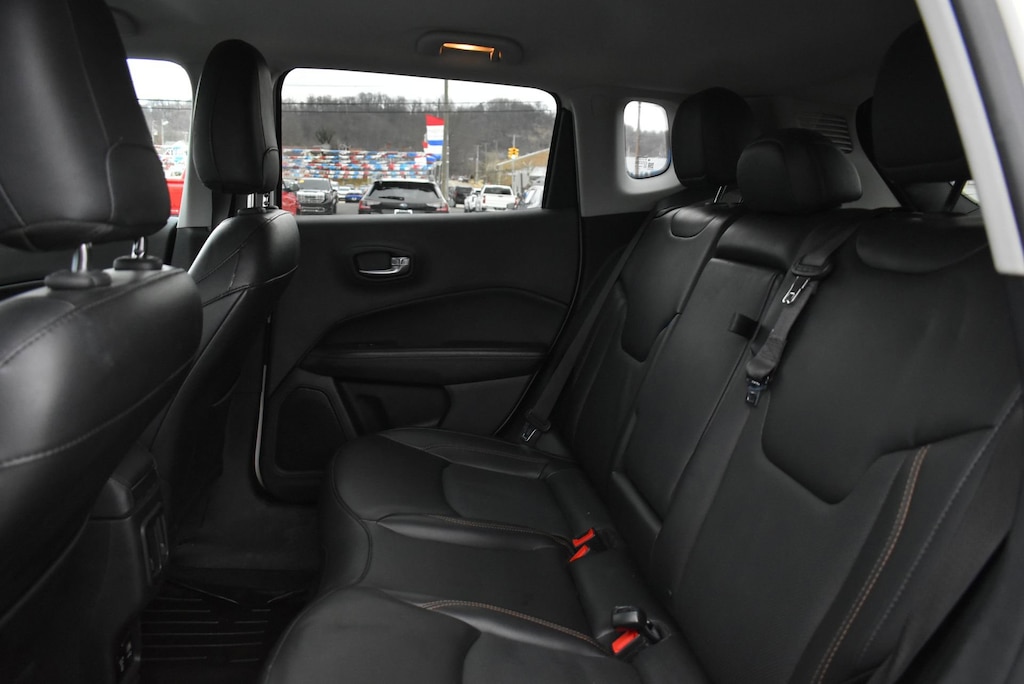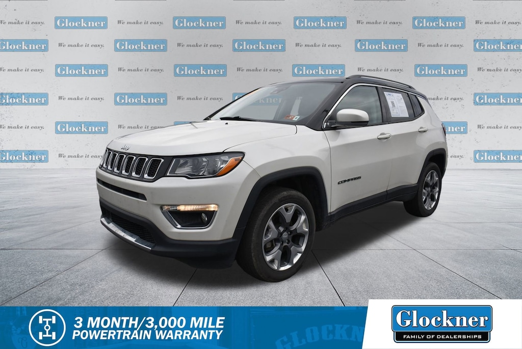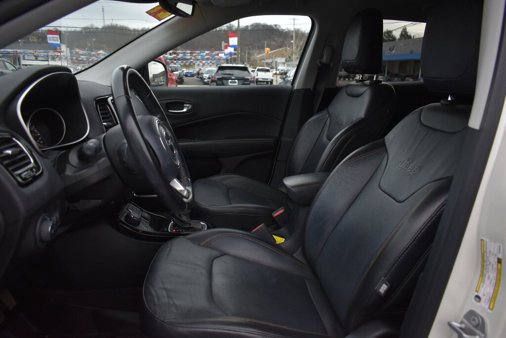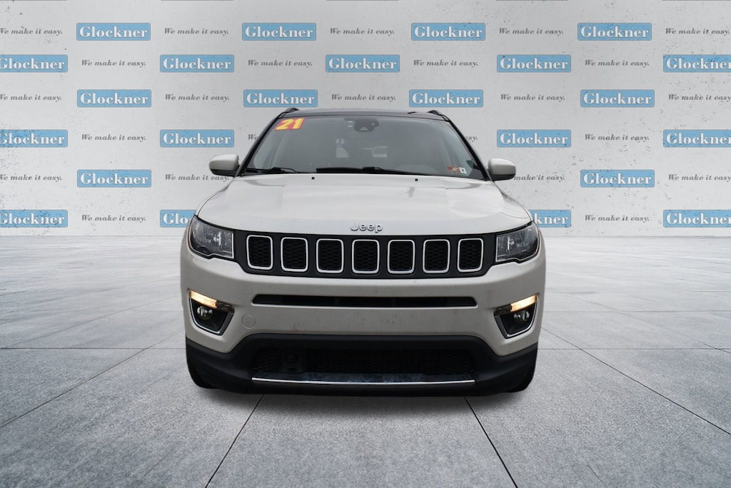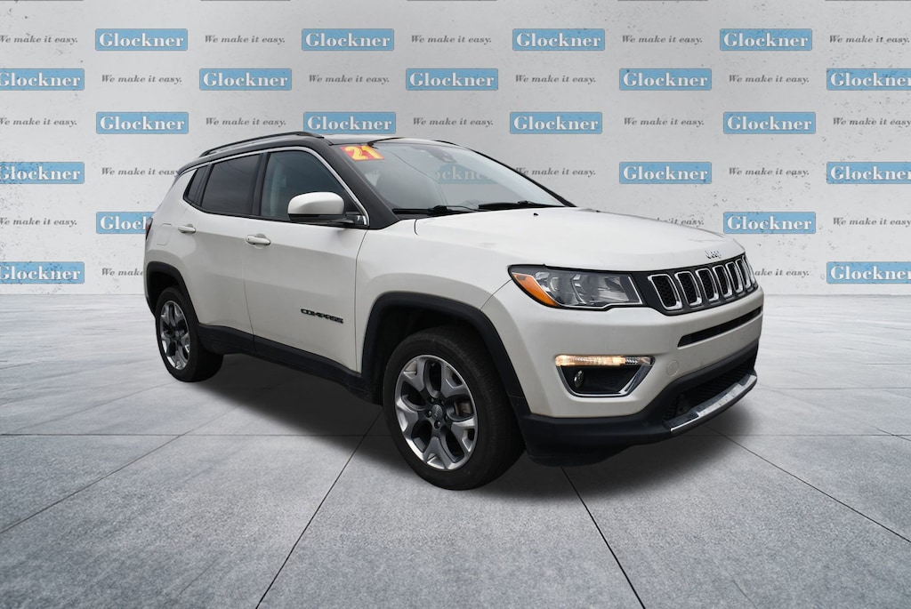 Glockner of Ironton is proud to offer this great 2021 Jeep Compass in Pearl White Tri-Coat. This 2021 Jeep Compass has passed our comprehensive inspection and comes with the following features; Quick Order Package 2GG, 4WD, 3.73 Axle Ratio, 4-Wheel Disc Brakes, 6 Speakers, ABS brakes, Air Conditioning, Alloy wheels, AM/FM radio: SiriusXM, Anti-whiplash front head restraints, Apple CarPlay/Android Auto, Auto-dimming Rear-View mirror, Automatic temperature control, Brake assist, Bumpers: body-color, Compass, Delay-off headlights, Driver door bin, Driver vanity mirror, Dual front impact airbags, Dual front side impact airbags, Electronic Stability Control, Four wheel independent suspension, Front anti-roll bar, Front Bucket Seats, Front Center Armrest w/Storage, Front dual zone A/C, Front fog lights, Front reading lights, Fully automatic headlights, Heated door mirrors, Heated front seats, Heated steering wheel, Illuminated entry, Knee airbag, Leather Shift Knob, Leather Trimmed Bucket Seats, Low tire pressure warning, Occupant sensing airbag, Outside temperature display, Overhead airbag, Overhead console, Panic alarm, ParkView Rear Back-Up Camera, Passenger door bin, Passenger vanity mirror, Power door mirrors, Power driver seat, Power steering, Power windows, Radio: Uconnect 4 w/8.4 Display, Rain sensing wipers, Rear anti-roll bar, Rear seat center armrest, Rear window defroster, Rear window wiper, Remote keyless entry, Roof rack: rails only, Security system, Speed control, Split folding rear seat, Spoiler, Steering wheel mounted audio controls, Tachometer, Telescoping steering wheel, Tilt steering wheel, Traction control, Trip computer, Turn signal indicator mirrors, Variably intermittent wipers, and Wheels: 18 x 7.0 Polished/Gray Pockets Aluminum.4WD.22/30 City/Highway MPG