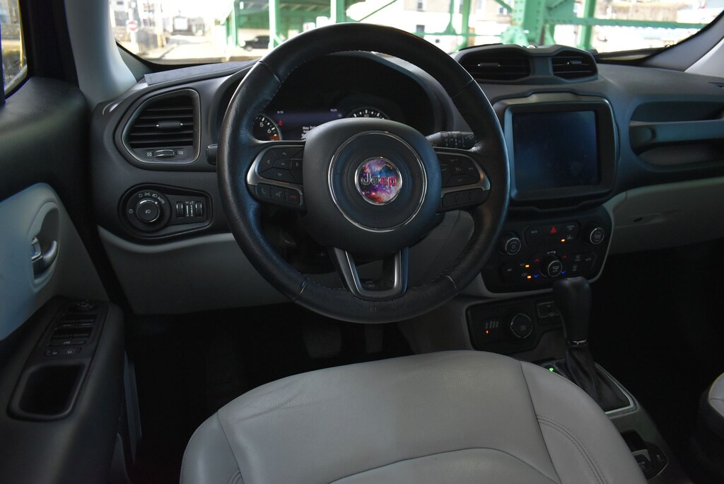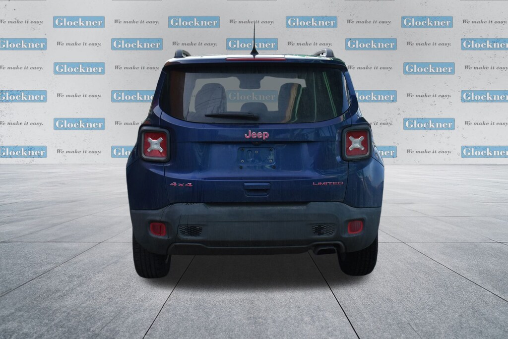 Glockner Chrysler Dodge Jeep Ram of Ashland is proud to offer this superb 2021 Jeep Renegade in Jetset Blue Clearcoat. This 2021 Jeep Renegade has passed our comprehensive inspection and comes with the following features; Quick Order Package 22D (177HP Power Rating), Glockner Certified Certified, 17" x 7.0" Aluminum Wheels, 3.734 Final Drive Ratio, 4-Wheel Disc Brakes, 6 Speakers, ABS brakes, Active Grille Shutters, Air Conditioning, Alloy wheels, AM/FM radio: SiriusXM, Anti-whiplash front head restraints, Apple CarPlay/Android Auto, Auto-dimming Rear-View mirror, Automatic temperature control, Brake assist, Compass, Delay-off headlights, Driver door bin, Driver vanity mirror, Dual front impact airbags, Dual front side impact airbags, Electronic Stability Control, Emergency communication system: SiriusXM Guardian, Four wheel independent suspension, Front anti-roll bar, Front Bucket Seats, Front Center Armrest, Front dual zone A/C, Front fog lights, Front reading lights, Fully automatic headlights, Heated door mirrors, Heated front seats, Heated steering wheel, Illuminated entry, Knee airbag, Leather Shift Knob, Leather steering wheel, Leather Trimmed Bucket Seats, Low tire pressure warning, Navigation System, Normal Duty Suspension, Occupant sensing airbag, Outside temperature display, Overhead airbag, Panic alarm, ParkView Rear Back-Up Camera, Passenger door bin, Passenger vanity mirror, Power door mirrors, Power driver seat, Power steering, Power windows, Radio data system, Radio: Uconnect 4C Nav w/8.4" Display, Rain sensing wipers, Rear anti-roll bar, Rear seat center armrest, Rear window defroster, Rear window wiper, Remote keyless entry, Roof rack: rails only, Security system, Speed control, Split folding rear seat, Spoiler, Steering wheel mounted audio controls, Stop-Start Multiple VSM System, Tachometer, Telescoping steering wheel, Tilt steering wheel, Traction control, Trip computer, Turn signal indicator mirrors, Variably intermittent wipers, and Voltmeter.