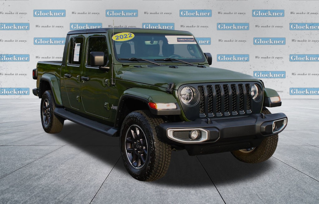 Glockner Chevrolet is proud to offer this beautiful 2022 Jeep Gladiator in Sarge Green Clearcoat. This 2022 Jeep Gladiator has passed our comprehensive inspection and comes with the following features; Cold Weather Group (Heated Front Seats and Heated Steering Wheel), Quick Order Package 24G, Gladiator Overland, Glockner Certified Certified, 4D Crew Cab, 3.6L V6 24V VVT, 4WD, Sarge Green Clearcoat, Navigation System, 110 MPH Vehicle Max Speed Calibration, 3.73 Rear Axle Ratio, 4-Wheel Disc Brakes, 9 Speakers, ABS brakes, Air Conditioning, Alloy wheels, AM/FM radio: SiriusXM, Apple CarPlay/Android Auto, Auto-dimming Rear-View mirror, Automatic temperature control, Black 3-Piece Hard Top, Brake assist, Compass, Corning Gorilla Glass, Delay-off headlights, Driver door bin, Driver vanity mirror, Dual front impact airbags, Dual front side impact airbags, Electronic Stability Control, Emergency communication system: SiriusXM Guardian, Freedom Panel Storage Bag, Front anti-roll bar, Front Bucket Seats, Front Center Armrest w/Storage, Front dual zone A/C, Front fog lights, Front License Plate Bracket, Front reading lights, Fully automatic headlights, Garage door transmitter, Heated door mirrors, Illuminated entry, Integrated roll-over protection, Leather steering wheel, Low tire pressure warning, MOPAR All-Weather Slush Mats, MOPAR Satin Black Grille, Normal Duty Plus Suspension, Occupant sensing airbag, Outside temperature display, Overland Cloth Bucket Seats, Panic alarm, ParkView Rear Back-Up Camera, Passenger door bin, Passenger vanity mirror, Power door mirrors, Power steering, Power windows, Radio data system, Radio: Uconnect 4C Nav w/8.4 Display, Rear anti-roll bar, Rear reading lights, Rear Sliding Window, Rear Window Defroster, Remote keyless entry, Remote Start System, Security system, Speed control, Split folding rear seat, Steering wheel mounted audio controls, Tachometer, Telescoping steering wheel, Tilt steering wheel, Traction control, Trip computer, Variably intermittent wipers, Voltmeter, and Wheels: 18 x 7.5 Granite Crystal Aluminum.Clean Auto Check/No Accidents Reported, One Owner, Bluetooth / Hands-Free Calling, Rear View Back Up Camera, Local Trade, Apple CarPlay/Android Auto, Gladiator Overland, 4D Crew Cab, 3.6L V6 24V VVT, 4WD, Sarge Green Clearcoat, Cold Weather Group, Heated Front Seats, Heated Steering Wheel, Navigation System, Quick Order Package 24G.Certified.Certification Program Details: Type your description hereOdometer is 10582 miles below market average!