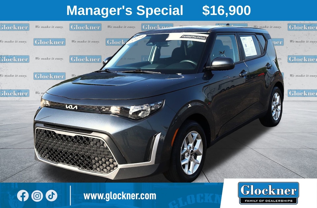 Glockner Chevrolet is proud to offer this great-looking 2024 Kia Soul in Gravity Gray. This 2024 Kia Soul has passed our comprehensive inspection and comes with the following features; LX Technology Package (6.5J x 16 Alloy Wheels, Blind-Spot Collision-Avoidance Assist, Lane Change Assist, and Rear Cross-Traffic Collision Avoidance Assist), Soul LX, Glockner Certified Certified, 4D Hatchback, 2.0L I4 DOHC, FWD, Gravity Gray, 4-Wheel Disc Brakes, 6 Speakers, 6.5J x 16 Steel Wheels, ABS brakes, Air Conditioning, AM/FM radio, Apple CarPlay & Android Auto, Auto High-beam Headlights, Brake assist, Bumpers: body-color, Carpeted Floor Mats, Compass, Delay-off headlights, Driver door bin, Driver vanity mirror, Dual front impact airbags, Dual front side impact airbags, Electronic Stability Control, Exterior Parking Camera Rear, Front anti-roll bar, Front Bucket Seats, Front Center Armrest, Front reading lights, Front wheel independent suspension, Fully automatic headlights, Illuminated entry, Low tire pressure warning, Occupant sensing airbag, Outside temperature display, Overhead airbag, Overhead console, Panic alarm, Passenger door bin, Passenger vanity mirror, Power door mirrors, Power steering, Power windows, Radio data system, Radio: AM/FM/MP3/HD Audio System, Rear window defroster, Rear window wiper, Remote keyless entry, Speed control, Speed-sensing steering, Split folding rear seat, Steering wheel mounted audio controls, Tachometer, Telescoping steering wheel, Tilt steering wheel, Traction control, Trip computer, Variably intermittent wipers, and Woven & Tricot Cloth Seat Trim.