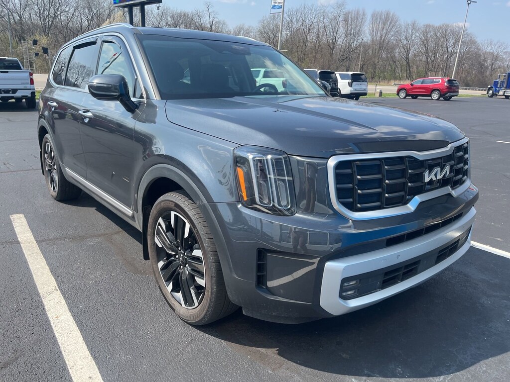 Glockner Chevrolet is proud to offer this superb 2024 Kia Telluride in Gravity Gray. This 2024 Kia Telluride has passed our comprehensive inspection and comes with the following features; Telluride SX, Glockner Certified Certified, 4D Sport Utility, 3.8L V6 DOHC, AWD, Heated & Ventilated Front Bucket Seats, Heated front seats, Heated steering wheel, Navigation System, Power Liftgate, Power moonroof, 10 Speakers, 3.648 Axle Ratio, 3rd row seats: split-bench, 4-Wheel Disc Brakes, ABS brakes, Air Conditioning, Alloy wheels, AM/FM radio: SiriusXM, Apple CarPlay & Android Auto, Auto High-beam Headlights, Auto-dimming Rear-View mirror, Automatic temperature control, Brake assist, Bumpers: body-color, Cargo Cover, Carpet Floor Mats, Compass, Delay-off headlights, Driver door bin, Driver vanity mirror, Dual front impact airbags, Dual front side impact airbags, Electronic Stability Control, Emergency communication system: 911 Connect, Exterior Parking Camera Rear, Folding Cargo Tray, Four wheel independent suspension, Front anti-roll bar, Front Bucket Seats, Front Center Armrest, Front dual zone A/C, Front fog lights, Front reading lights, Fully automatic headlights, Garage door transmitter: HomeLink, harman/kardon® Speakers, Heated door mirrors, Illuminated entry, Knee airbag, Leather Seat Trim, Leather Shift Knob, Leather steering wheel, Low tire pressure warning, Memory seat, Occupant sensing airbag, Outside temperature display, Overhead airbag, Overhead console, Panic alarm, Passenger door bin, Passenger vanity mirror, Power door mirrors, Power driver seat, Power passenger seat, Power steering, Power windows, Radio data system, Radio: AM/FM Harman Kardon Audio System, Rear air conditioning, Rear anti-roll bar, Rear audio controls, Rear Bumper Applique, Rear reading lights, Rear side impact airbag, Rear window defroster, Rear window wiper, Reclining 3rd row seat, Remote keyless entry, Roof rack: rails only, Security system, Smart Key w/ Push Button and Remote Start, Speed control, Speed-sensing steering, Split folding rear seat, Spoiler, Steering wheel mounted audio controls, Tachometer, Telescoping steering wheel, Tilt steering wheel, Tow Hitch w/Harness, Traction control, Trip computer, Turn signal indicator mirrors, Variably intermittent wipers, Ventilated front seats, and Wheels: 20 x 7.5 Black Finish.