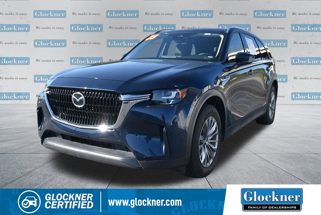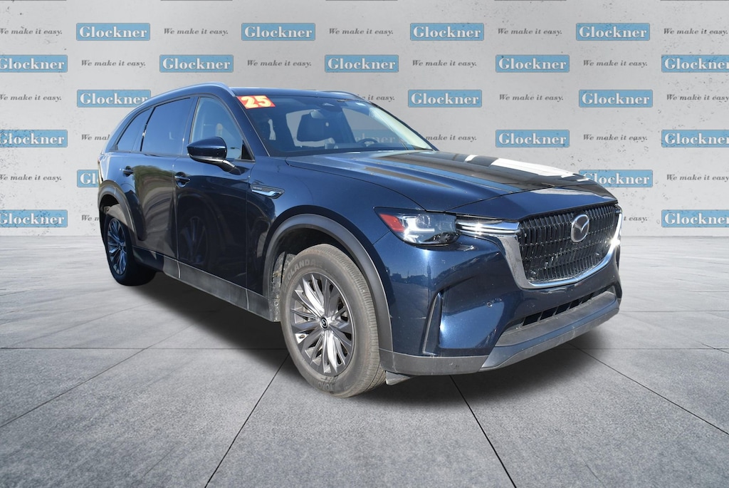 Certified. Certification Program Details: 12 Months or 12,000 miles Comprehensive Warranty. 5 Years or 100,000 miles Powertrain Warranty.Glockner of Ironton is proud to offer this terrific 2025 Mazda CX-90 in Deep Crystal Blue Mica. This 2025 Mazda CX-90 has passed our comprehensive inspection and comes with the following features; Glockner Certified Certified, 3rd row seats: bench, 4-Wheel Disc Brakes, 8 Speakers, ABS brakes, Air Conditioning, Alloy wheels, AM/FM radio, Auto High-beam Headlights, Automatic temperature control, Brake assist, Bumpers: body-color, Compass, Delay-off headlights, Driver door bin, Driver vanity mirror, Dual front impact airbags, Dual front side impact airbags, E911 Automatic Emergency Notification, Electronic Stability Control, Emergency communication system: MAZDA CONNECT, Exterior Parking Camera Rear, Four wheel independent suspension, Front anti-roll bar, Front Bucket Seats, Front Center Armrest w/Storage, Front dual zone A/C, Front reading lights, Fully automatic headlights, Heated door mirrors, Heated Front Bucket Seats, Heated front seats, Illuminated entry, Infotainment System Voice Command, Knee airbag, Leather Seat Trim, Leather Shift Knob, Leather steering wheel, Low tire pressure warning, Mazda Connected Services, Occupant sensing airbag, Outside temperature display, Overhead airbag, Overhead console, Pandora Internet Radio Integration, Panic alarm, Passenger door bin, Passenger vanity mirror, Power door mirrors, Power driver seat, Power Liftgate, Power moonroof, Power passenger seat, Power steering, Power windows, Radio Broadcast Data System Program Information, Radio data system, Radio: AM/FM w/HD/8-Speaker Sound System, Rain sensing wipers, Rear air conditioning, Rear anti-roll bar, Rear reading lights, Rear seat center armrest, Rear window defroster, Rear window wiper, Remote keyless entry, SMS Text Msg Audio Delivery & Reply, Speed control, Speed-sensing steering, Split folding rear seat, Spoiler, Steering wheel mounted audio controls, Tachometer, Telescoping steering wheel, Tilt steering wheel, Traction control, Trip computer, Turn signal indicator mirrors, Variably intermittent wipers, and Wheels: 19 x 8.5J Aluminum Alloy.24/28 City/Highway MPG