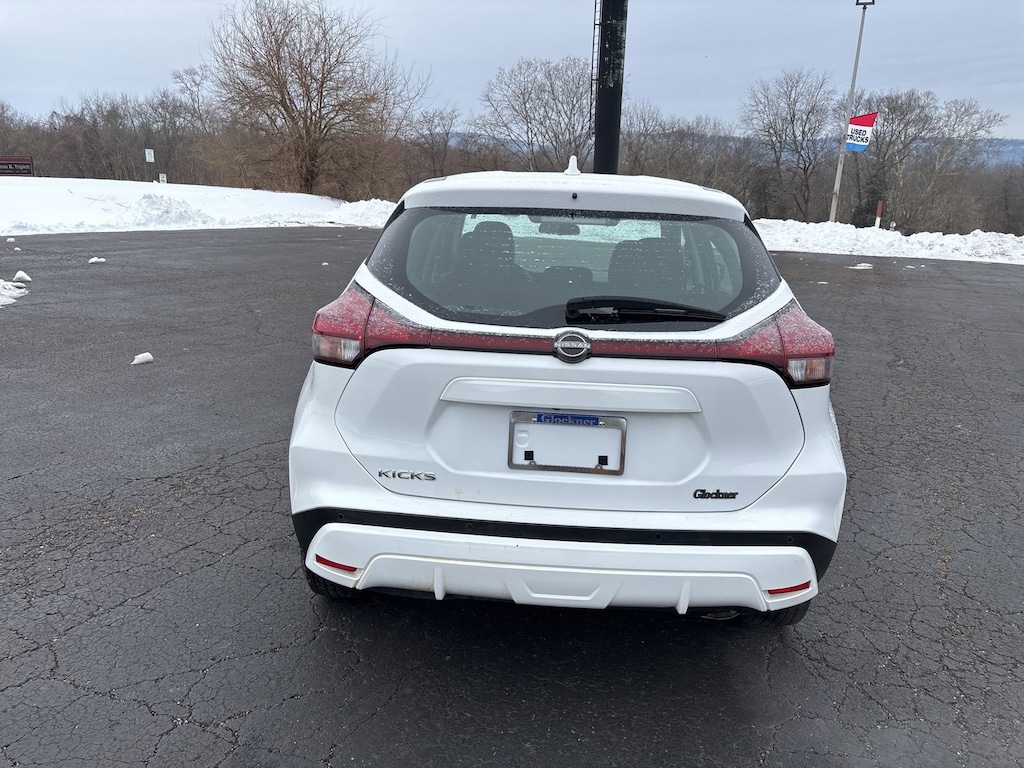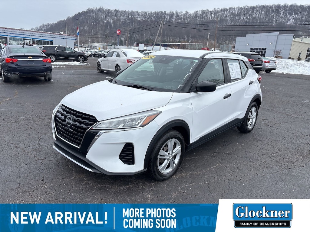 Glockner Chevrolet is proud to offer this fantastic 2022 Nissan Kicks in Fresh Powder. This 2022 Nissan Kicks has passed our comprehensive inspection and comes with the following features; Kicks S, 4D Sport Utility, 16 Steel Wheels w/Full Covers, 3.927 Axle Ratio, 6 Speakers, ABS brakes, Air Conditioning, AM/FM radio, Apple CarPlay/Android Auto, Auto High-beam Headlights, Blind Spot Warning, Brake assist, Bumpers: body-color, Cloth Seat Trim, Driver door bin, Driver vanity mirror, Driver's Seat Mounted Armrest, Dual front impact airbags, Dual front side impact airbags, Electronic Stability Control, Front anti-roll bar, Front Bucket Seats, Front reading lights, Front wheel independent suspension, Fully automatic headlights, Illuminated entry, Knee airbag, Low tire pressure warning, Occupant sensing airbag, Outside temperature display, Overhead airbag, Panic alarm, Passenger door bin, Passenger vanity mirror, Power door mirrors, Power steering, Power windows, Radio data system, Radio: AM/FM Audio System, Rear Parking Sensors, Rear reading lights, Rear side impact airbag, Rear window defroster, Rear window wiper, Remote keyless entry, Speed control, Split folding rear seat, Sport steering wheel, Steering wheel mounted audio controls, Tachometer, Telescoping steering wheel, Tilt steering wheel, Traction control, Trip computer, and Variably intermittent wipers.