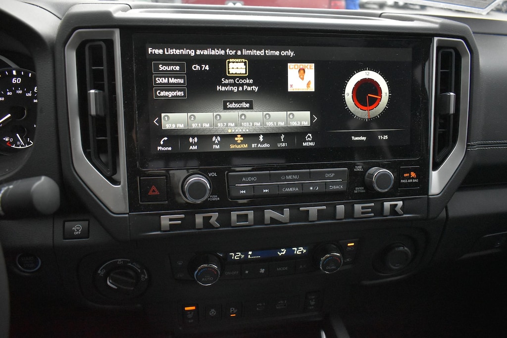 Glockner Chrysler Dodge Jeep Ram of Ashland is proud to offer this gorgeous 2025 Nissan Frontier in Super Black. This 2025 Nissan Frontier has passed our comprehensive inspection and comes with the following features; SV Convenience Package (120V Power Outlet in Bed, 120V Power Outlet in Rear Center Console, Bed Under-Rail Lighting, Front Halogen Fog Lights, Heated Front Seats, Heated Leather Steering Wheel, Heated Outside Mirrors, HVAC - Dual-Zone Front Auto A/C, I-Key w/Request Switches on O/S Handles, Illuminated Locking Glove Box w/Damper, Leather Shift Lever, Remote Engine Starter, Spray-In Bedliner, Tow/Haul Mode Switch, Trailer Hitch w/Wiring Harness, and Utili-Track System), Telematics Delete Package (NissanConnect Services & Wi-Fi Hotspot Delete), Tow Package (T11) (DISC), Glockner Certified Certified, 4WD, 17" Alloy Wheels, 3.692 Axle Ratio, 4-Wheel Disc Brakes, 6 Speakers, ABS brakes, Air Conditioning, Alloy wheels, AM/FM radio: SiriusXM, Anti-whiplash front head restraints, Auto High-beam Headlights, Blind Spot Warning, Brake assist, Bumpers: body-color, Carpeted Floor Mats, Delay-off headlights, Driver door bin, Driver vanity mirror, Dual front impact airbags, Dual front side impact airbags, Electronic Stability Control, Electronic Tailgate Lock, Emergency communication system, Front anti-roll bar, Front Bucket Seats, Front Center Armrest, Front reading lights, Front wheel independent suspension, Fully automatic headlights, Illuminated entry, Knee airbag, Low tire pressure warning, Occupant sensing airbag, Overhead airbag, Overhead console, Panic alarm, Passenger door bin, Passenger vanity mirror, Power door mirrors, Power driver seat, Power steering, Power windows, Premium Cloth Seat Trim, Radio data system, Radio: SXM/AM/FM/AUX/USB Audio System, Rear anti-roll bar, Rear seat center armrest, Rear side impact airbag, Rear step bumper, Remote keyless entry, Security system, Speed control, Speed-sensing steering, Splash Guards (DISC), Split folding rear seat, Steering wheel mounted audio controls, Tachometer, Telescoping steering wheel, Tilt steering wheel, Traction control, Trip computer, Variably intermittent wipers, Voltmeter, and Wireless Apple CarPlay/Wireless Android Auto.