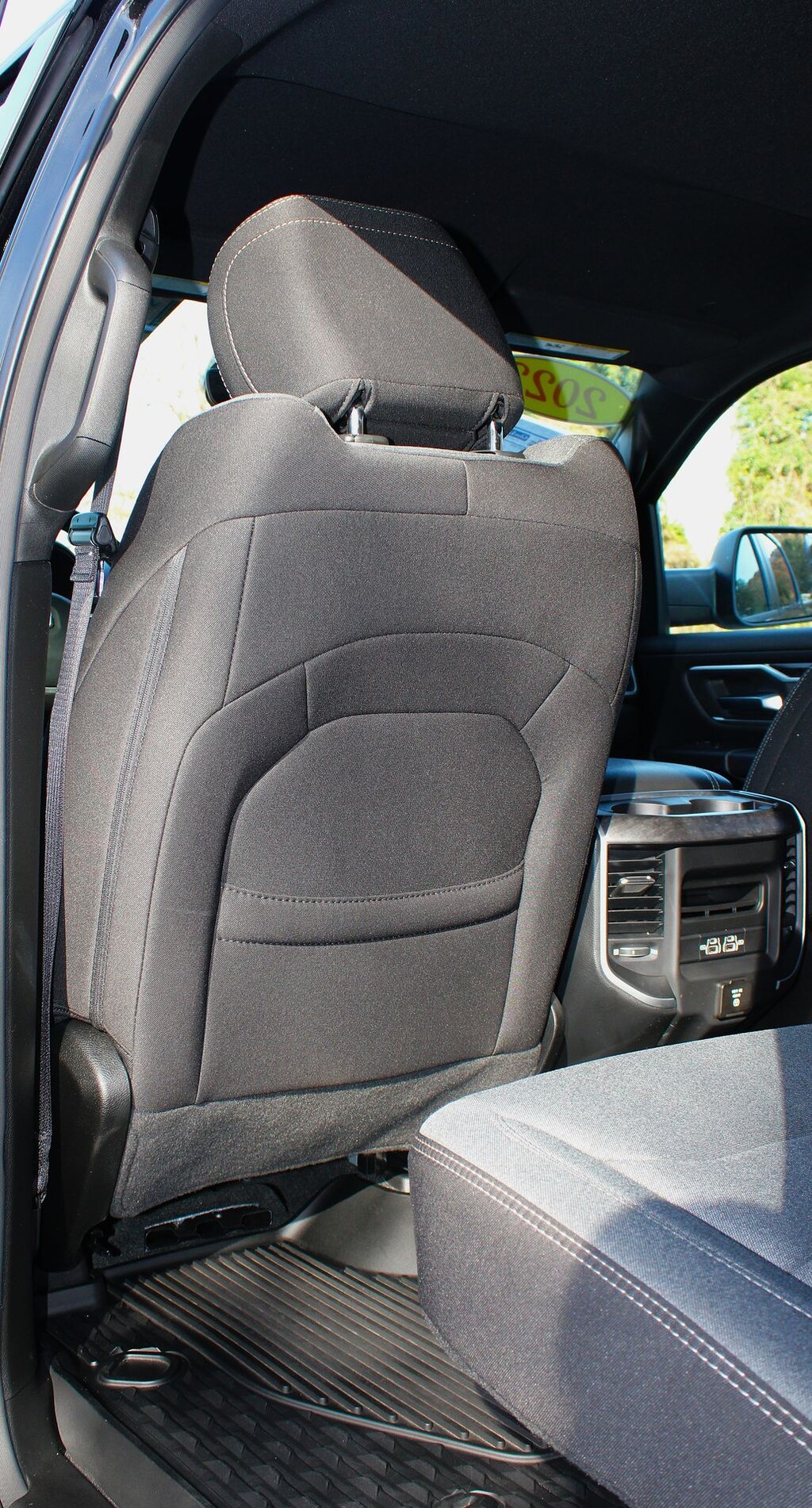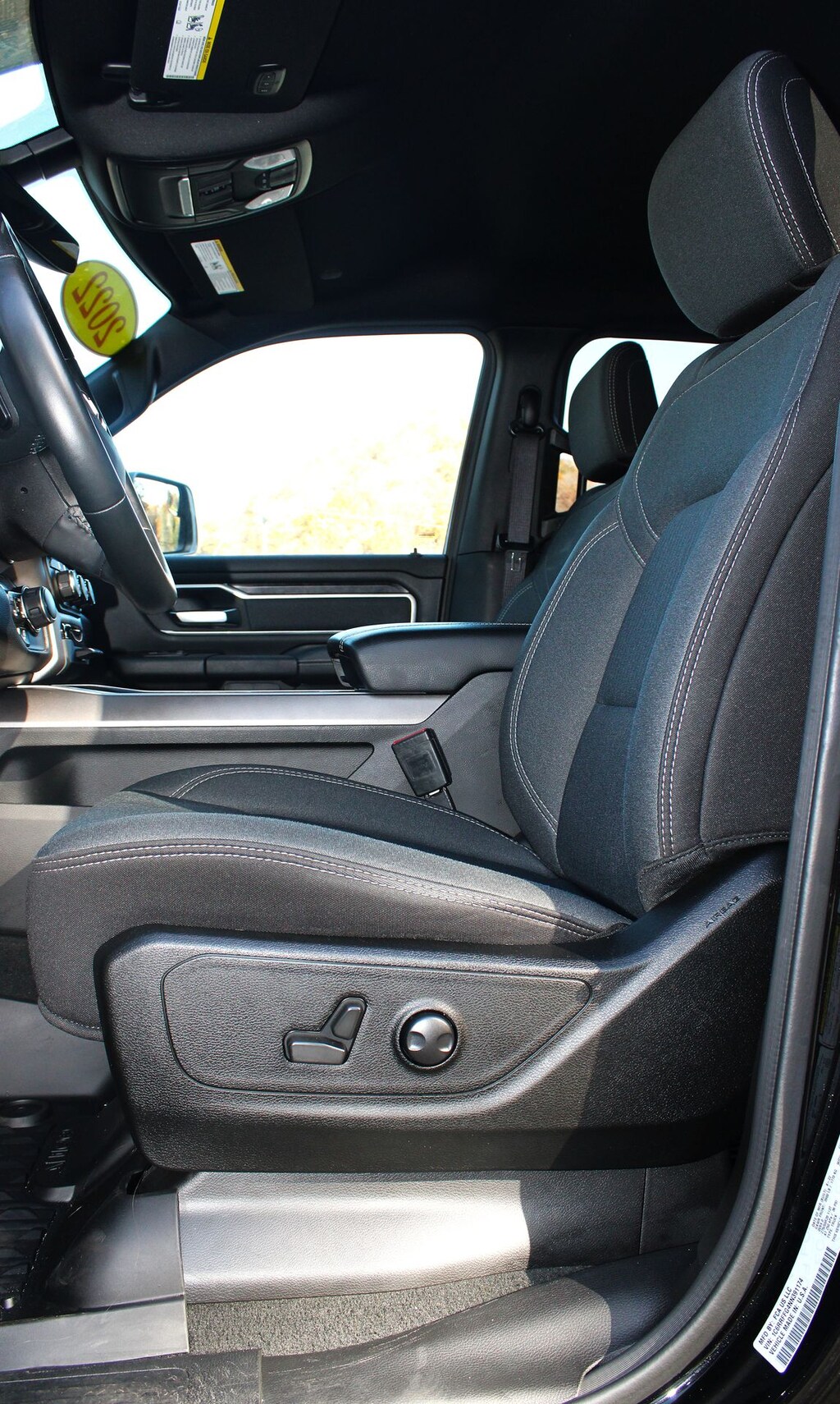 This 2022 Ram 1500 also boasts a stunning Diamond Black Crystal Pearlcoat exterior, complemented by sleek 20-inch aluminum chrome-clad wheels. The interior features premium black deluxe cloth bucket seats, providing both style and comfort.