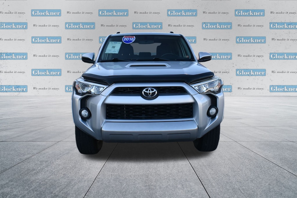 Glockner Chrysler Dodge Jeep Ram of Ashland is proud to offer this fantastic, reliable 2016 Toyota 4Runner in Classic Silver Metallic. This 2016 Toyota 4Runner has passed our comprehensive inspection and comes with the following features; 4WD, ABS brakes, Alloy wheels, Compass, Electronic Stability Control, Heated door mirrors, Illuminated entry, Low tire pressure warning, Remote keyless entry, Traction control, 3.727 Axle Ratio, 4-Wheel Disc Brakes, 8 Speakers, Air Conditioning, AM/FM radio: SiriusXM, Anti-whiplash front head restraints, Black Roof Rails, Brake assist, Bumpers: body-color, CD player, Driver door bin, Driver vanity mirror, Dual front impact airbags, Dual front side impact airbags, Exterior Parking Camera Rear, Fabric Seat Trim, Front anti-roll bar, Front Bucket Seats, Front Center Armrest, Front fog lights, Front reading lights, Front wheel independent suspension, Knee airbag, Leather Shift Knob, Occupant sensing airbag, Outside temperature display, Overhead airbag, Overhead console, Panic alarm, Passenger door bin, Passenger vanity mirror, Power door mirrors, Power driver seat, Power steering, Power windows, Radio: Entune Audio Plus w/Connected Navigation, Rear anti-roll bar, Rear seat center armrest, Rear window defroster, Rear window wiper, Roof rack, Speed control, Speed-sensing steering, Split folding rear seat, Spoiler, Steering wheel mounted audio controls, Tachometer, Telescoping steering wheel, Tilt steering wheel, Trip computer, Variably intermittent wipers, Voltmeter, and Wheels: 17" x 7.5" 7-Spoke Unique Off-Road Alloy.