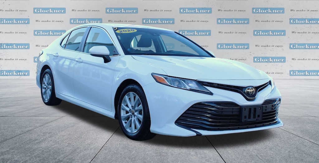 Glockner Chevrolet is proud to offer this stunning 2020 Toyota Camry in Super White. This 2020 Toyota Camry has passed our comprehensive inspection and comes with the following features; Camry LE, 4D Sedan, 2.5L I4 DOHC 16V, FWD, 4-Wheel Disc Brakes, 6 Speakers, 7.5J x 17 Alloy Wheels, ABS brakes, Air Conditioning, Alloy wheels, AM/FM radio: SiriusXM, Apple CarPlay/Android Auto, Auto High-beam Headlights, Brake assist, Bumpers: body-color, Delay-off headlights, Driver door bin, Driver vanity mirror, Dual front impact airbags, Dual front side impact airbags, Electronic Stability Control, Emergency communication system: Safety Connect with 1-year trial, Exterior Parking Camera Rear, Fabric Seat Trim, Four wheel independent suspension, Front anti-roll bar, Front Bucket Seats, Front Center Armrest, Front reading lights, Fully automatic headlights, Illuminated entry, Knee airbag, Low tire pressure warning, Occupant sensing airbag, Outside temperature display, Overhead airbag, Overhead console, Panic alarm, Passenger door bin, Passenger vanity mirror, Power door mirrors, Power driver seat, Power steering, Power windows, Radio data system, Radio: AM/FM Audio System, Rear anti-roll bar, Rear reading lights, Rear seat center armrest, Rear side impact airbag, Rear window defroster, Remote keyless entry, Security system, Speed control, Speed-sensing steering, Split folding rear seat, Steering wheel mounted audio controls, Tachometer, Telescoping steering wheel, Tilt steering wheel, Traction control, Trip computer, and Variably intermittent wipers.