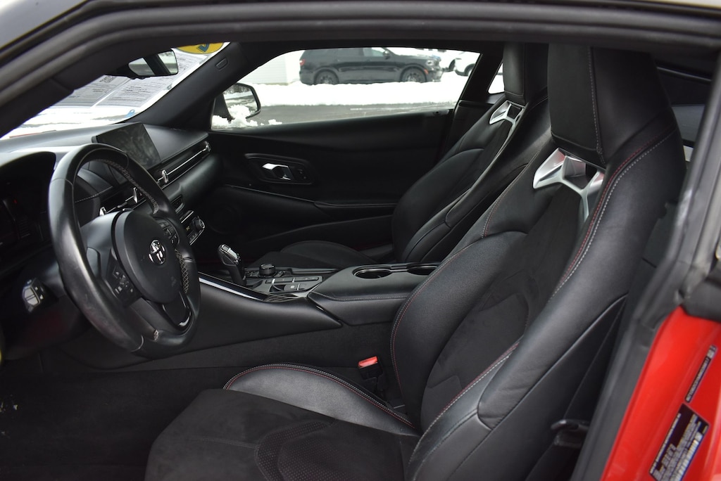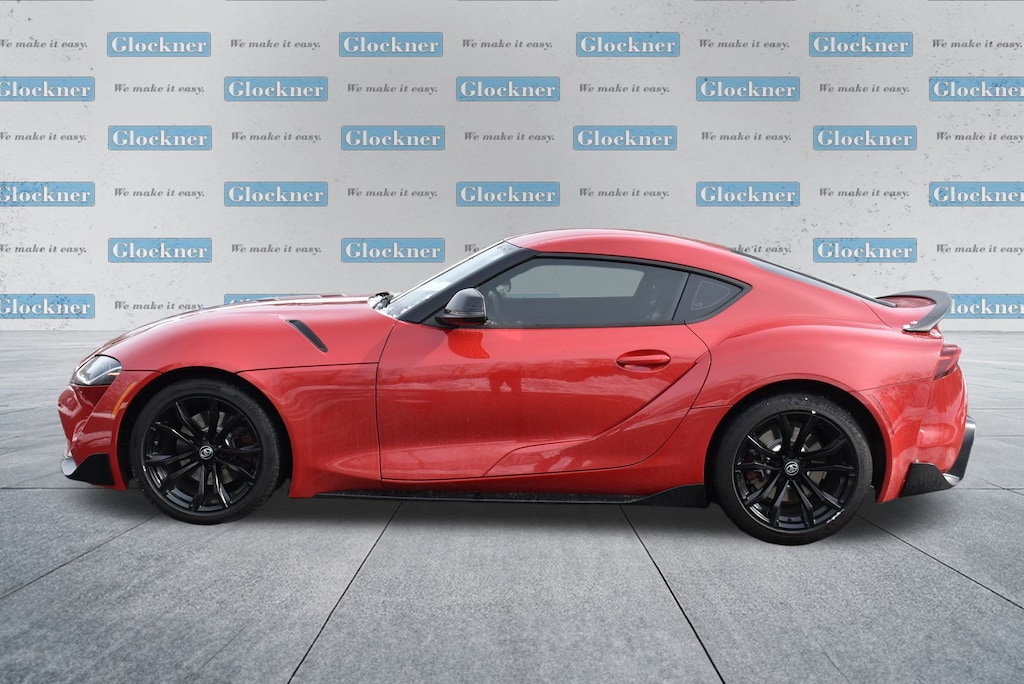Glockner Honda Toyota is proud to offer this outstanding 2021 Toyota Supra in Renaissance Red 2.0. This 2021 Toyota Supra has passed our comprehensive inspection and comes with the following features; Alcantara/Leather Seat Trim, AM/FM radio: SiriusXM, Automatic temperature control, Exterior Parking Camera Rear, Power driver seat, Wheels: 18" Cast Aluminum, 4 Speakers, 4-Wheel Disc Brakes, ABS brakes, Air Conditioning, Alloy wheels, AM/FM Stereo w/4 Speakers, Auto High-beam Headlights, Auto-dimming door mirrors, Auto-dimming Rear-View mirror, Brake assist, Bumpers: body-color, Child-Seat-Sensing Airbag, Delay-off headlights, Driver door bin, Driver vanity mirror, Dual front impact airbags, Dual front side impact airbags, Electronic Stability Control, Four wheel independent suspension, Front anti-roll bar, Front Bucket Seats, Front Center Armrest, Front dual zone A/C, Front fog lights, Front reading lights, Front Sport Seats, Fully automatic headlights, Garage door transmitter: HomeLink, Heated door mirrors, Illuminated entry, Knee airbag, Leather Shift Knob, Leather steering wheel, Low tire pressure warning, Occupant sensing airbag, Outside temperature display, Overhead airbag, Panic alarm, Passenger door bin, Passenger vanity mirror, Power door mirrors, Power passenger seat, Power steering, Power windows, Radio data system, Rain sensing wipers, Rear anti-roll bar, Rear window defroster, Remote keyless entry, Security system, Speed control, Speed-sensing steering, Speed-Sensitive Wipers, Steering wheel mounted audio controls, Tachometer, Telescoping steering wheel, Tilt steering wheel, Traction control, Trip computer, Turn signal indicator mirrors, and Variably intermittent wipers.