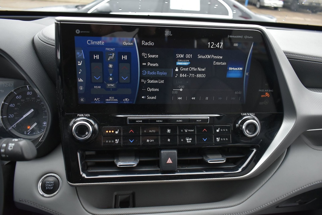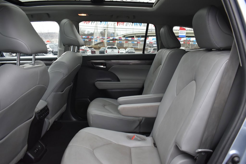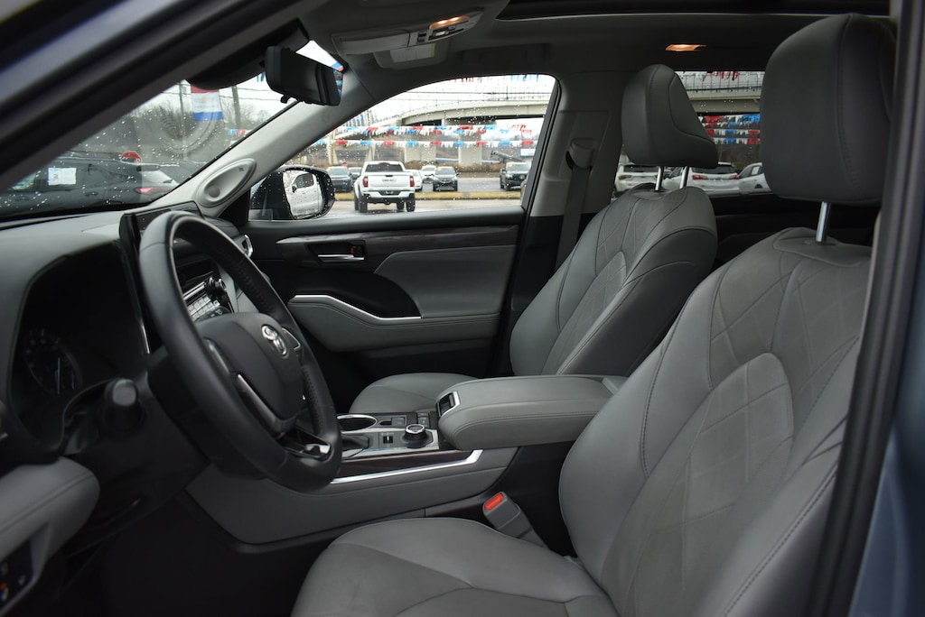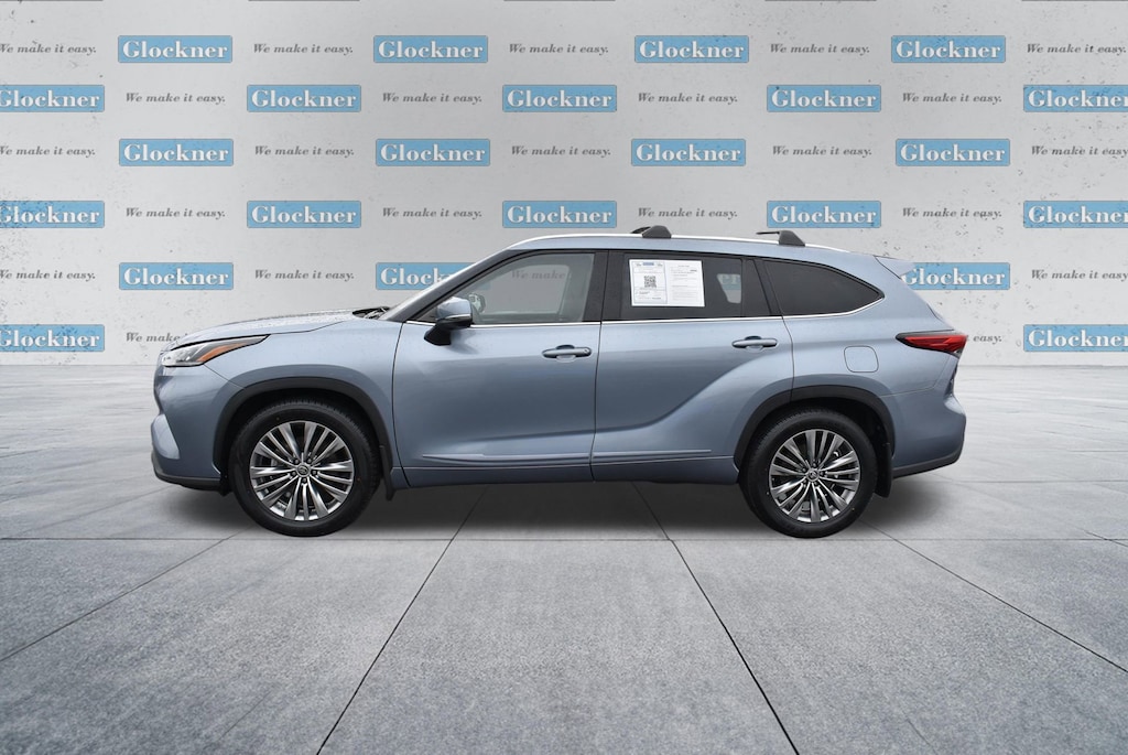 Glockner of Ironton is proud to offer this outstanding 2021 Toyota Highlander in Moon Dust. This 2021 Toyota Highlander has passed our comprehensive inspection and comes with the following features; AWD, 11 Speakers, 20 Painted Alloy Wheels, 3.003 Axle Ratio, 3rd row seats: split-bench, 4-Wheel Disc Brakes, ABS brakes, Air Conditioning, Alloy wheels, AM/FM radio: SiriusXM, Apple CarPlay/Android Auto, Auto High-beam Headlights, Auto-dimming Rear-View mirror, Automatic temperature control, Brake assist, Bumpers: body-color, Delay-off headlights, Digital Rearview Mirror w/HomeLink, Driver door bin, Driver vanity mirror, Dual front impact airbags, Dual front side impact airbags, Electronic Stability Control, Emergency communication system: Safety Connect with 1-year trial, Four wheel independent suspension, Front anti-roll bar, Front Bucket Seats, Front Center Armrest, Front dual zone A/C, Front fog lights, Front reading lights, Fully automatic headlights, Garage door transmitter: HomeLink, Heads-Up Display, Heated door mirrors, Heated front seats, Heated rear seats, Heated steering wheel, Heated/Ventilated Front Bucket Seats, High Grade LED Projector Headlights, Illuminated entry, Knee airbag, Leather Seat Trim, Leather Shift Knob, Low tire pressure warning, Memory seat, Navigation system: Dynamic Navigation (3-year trial), Occupant sensing airbag, Outside temperature display, Overhead airbag, Overhead console, Panic alarm, Panoramic Moonroof, Panoramic View Monitor, Passenger door bin, Passenger vanity mirror, Power door mirrors, Power driver seat, Power Liftgate, Power moonroof, Power passenger seat, Power steering, Power windows, Radio: Premium Audio w/JBL Clari-Fi, Rain sensing wipers, Rear air conditioning, Rear anti-roll bar, Rear reading lights, Rear window defroster, Rear window wiper, Reclining 3rd row seat, Remote keyless entry, Roof rack: rails only, Security system, Speed control, Speed-sensing steering, Split folding rear seat, Spoiler, Steering wheel mounted audio controls, Tachometer, Telescoping steering wheel, Tilt steering wheel, Traction control, Trip computer, Turn signal indicator mirrors, Variably intermittent wipers, and Ventilated front seats.