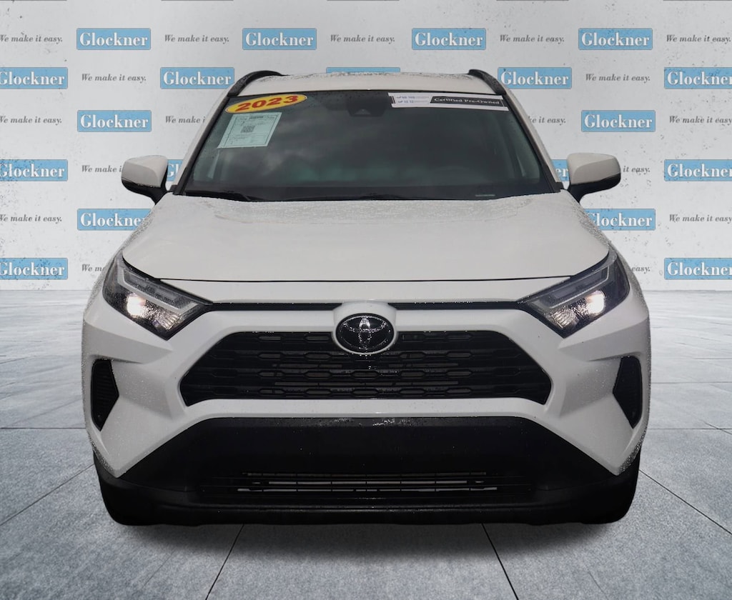 Glockner of Ironton is proud to offer this superb 2023 Toyota RAV4 in Ice Cap. This 2023 Toyota RAV4 has passed our comprehensive inspection and comes with the following features; RAV4 XLE, Glockner Certified Certified, 4D Sport Utility, FWD, Black w/Fabric Seat Trim, AM/FM radio: SiriusXM, Automatic temperature control, Exterior Parking Camera Rear, Power driver seat, Wheels: 17 5-Spoke Silver Alloy, 4-Wheel Disc Brakes, 6 Speakers, ABS brakes, Air Conditioning, Alloy wheels, Auto High-beam Headlights, Axle Ratio: 3.177, Brake assist, Bumpers: body-color, Delay-off headlights, Driver door bin, Driver vanity mirror, Dual front impact airbags, Dual front side impact airbags, Electronic Stability Control, Emergency communication system: Safety Connect (10-year trial), Fabric Seat Trim, Four wheel independent suspension, Front anti-roll bar, Front Bucket Seats, Front Center Armrest, Front dual zone A/C, Front reading lights, Fully automatic headlights, Heated door mirrors, Illuminated entry, Knee airbag, Low tire pressure warning, Occupant sensing airbag, Outside temperature display, Overhead airbag, Overhead console, Panic alarm, Passenger door bin, Passenger vanity mirror, Power door mirrors, Power steering, Power windows, Radio data system, Radio: AM/FM/XM Audio System, Rear anti-roll bar, Rear seat center armrest, Rear window defroster, Rear window wiper, Remote keyless entry, Speed control, Speed-sensing steering, Split folding rear seat, Spoiler, Steering wheel mounted audio controls, Tachometer, Telescoping steering wheel, Tilt steering wheel, Traction control, Trip computer, Turn signal indicator mirrors, and Variably intermittent wipers.