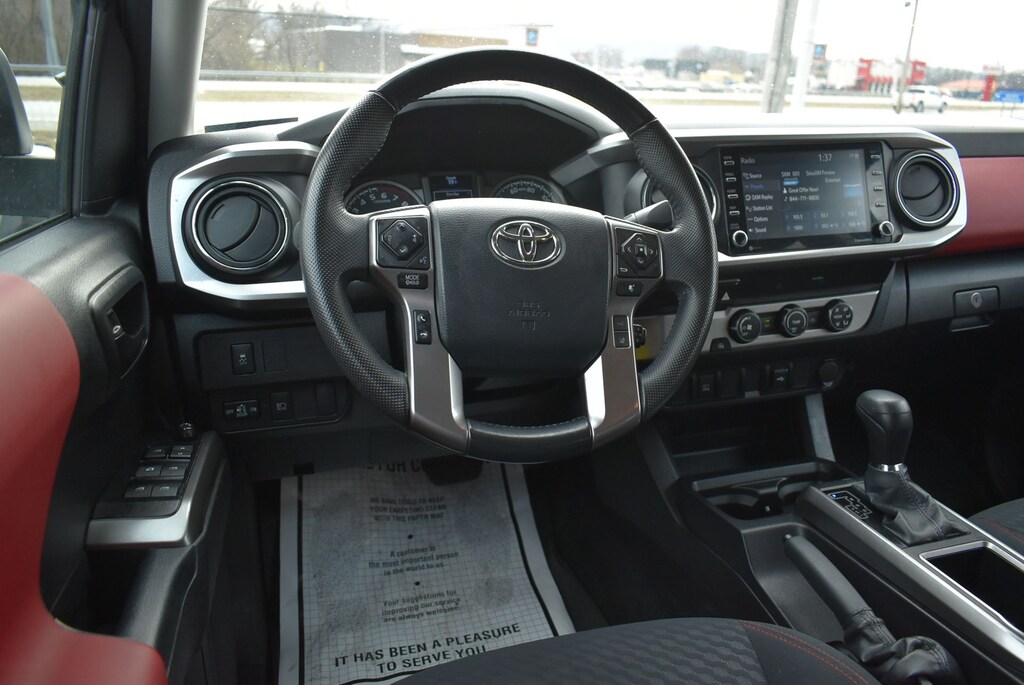 The spacious and well-appointed interior of the Tacoma SR5 is designed to keep you comfortable and connected. Enjoy the convenience of features like Apple CarPlay, Android Auto, and a rearview camera, as well as the added security of advanced safety technologies like Forward Collision Warning and Automatic Emergency Braking.