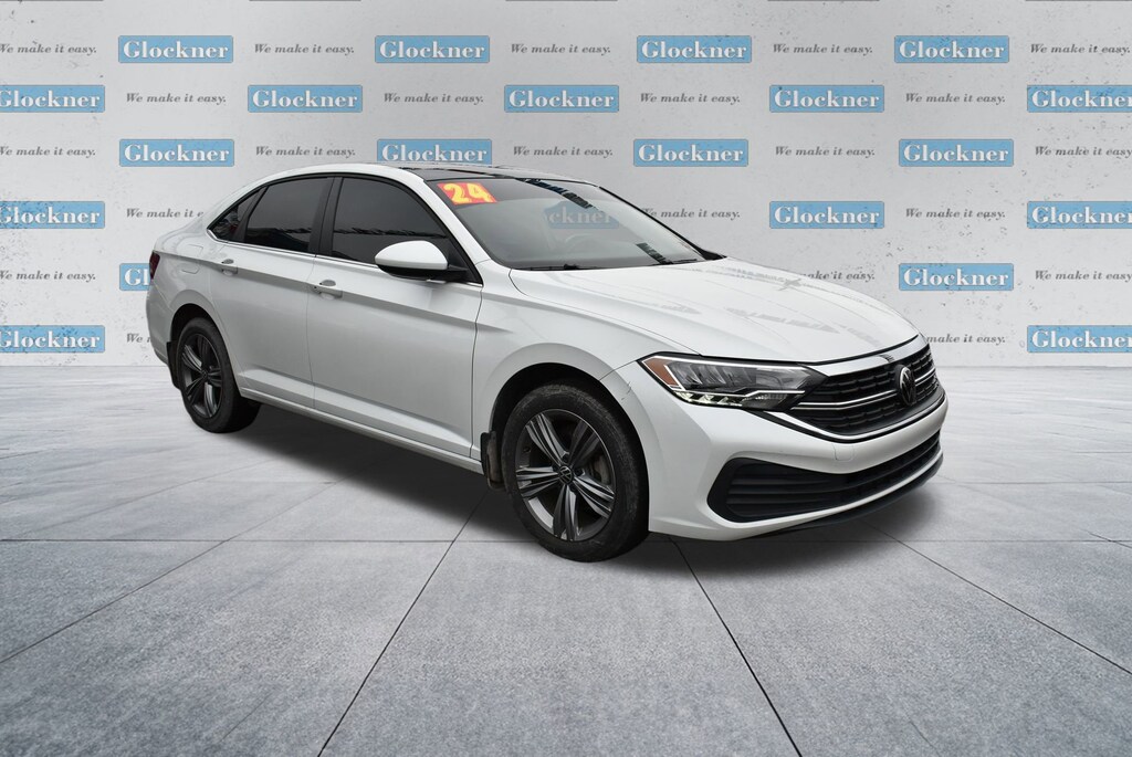 Glockner of Ironton is proud to offer this great 2024 Volkswagen Jetta in Opal White. This 2024 Volkswagen Jetta has passed our comprehensive inspection and comes with the following features; Panoramic Sunroof Package (Dual Front Reading Lights, Illuminated Vanity Mirrors, Overhead Storage Compartment, and Power Tilting & Sliding Panoramic Sunroof), Glockner Certified Certified, Storm Gray Premium Synthetic, 4 Speakers, 4-Wheel Disc Brakes, ABS brakes, Active Blind Spot Monitor, Air Conditioning, Alloy wheels, Auto-dimming Rear-View mirror, Automatic temperature control, Black Trunk Lid Lip Spoiler, Brake assist, Bumpers: body-color, Delay-off headlights, Driver door bin, Driver vanity mirror, Dual front impact airbags, Dual front side impact airbags, Electronic Stability Control, Emergency communication system: VW Car-Net Safe & Secure 5-year, Exterior Parking Camera Rear, First Aid Kit, Front anti-roll bar, Front Bucket Seats, Front Center Armrest, Front dual zone A/C, Front wheel independent suspension, Fully automatic headlights, Heated door mirrors, Heated Front Seats, Heated front seats, Heavy Duty Trunk Liner w/VW CarGo Blocks, Illuminated entry, Leather Shift Knob, Leather steering wheel, Low tire pressure warning, Occupant sensing airbag, Outside temperature display, Overhead airbag, Overhead console, Panic alarm, Passenger door bin, Passenger vanity mirror, Power door mirrors, Power driver seat, Power steering, Power windows, Radio data system, Radio: MIB3 Composition Color w/6.5 Touchscreen, Rain sensing wipers, Rear anti-roll bar, Rear reading lights, Rear seat center armrest, Rear window defroster, Remote keyless entry, Roadside Assistance Kit, Rubber Monster Mats Kit (Set of 4), Speed control, Speed-sensing steering, Split folding rear seat, Steering wheel mounted audio controls, Tachometer, Telescoping steering wheel, Tilt steering wheel, Traction control, Trip computer, V-Tex Leatherette Seat Trim, Variably intermittent wipers, VW Care, and Wheels: 17 Twin 5-Spoke Silver Painted Alloy.